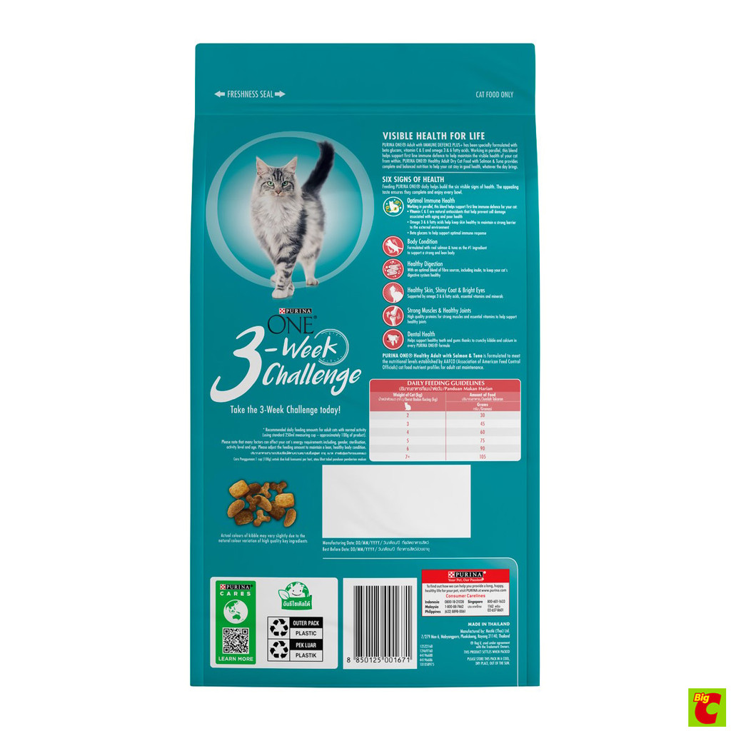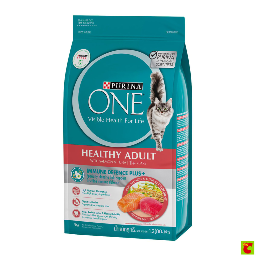 เพียวริน่า วัน เฮลตี้ อะเดาท์ อาหารแมวชนิดเม็ด สูตรผสมปลาแซลมอนและทูน่า 1.2 กก.