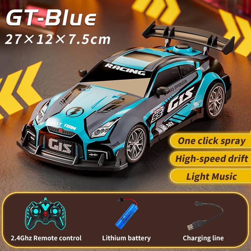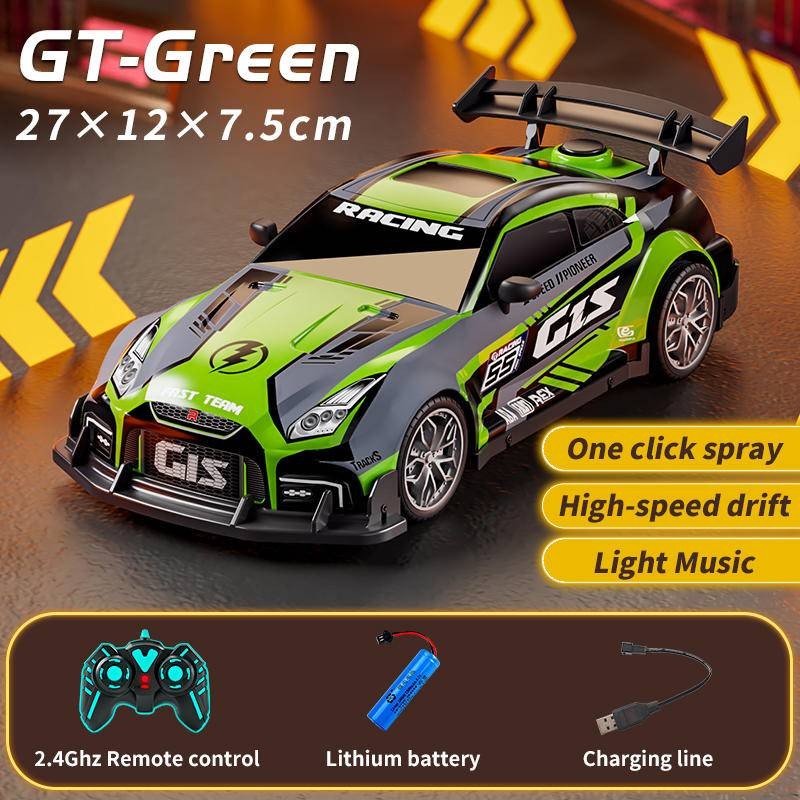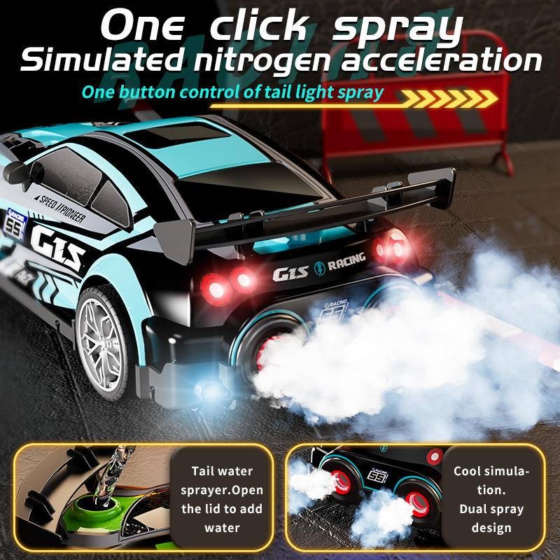 1:16 Mist สเปรย์ RC รถแข่งของเล่น 2.4G รีโมทคอนโทรล GTR Drift กีฬารถ 1/16 ความเร็วสูงพร้อม Atomization เพลงไฟ LED สําหรับของเล่นเด็กของขวัญ
