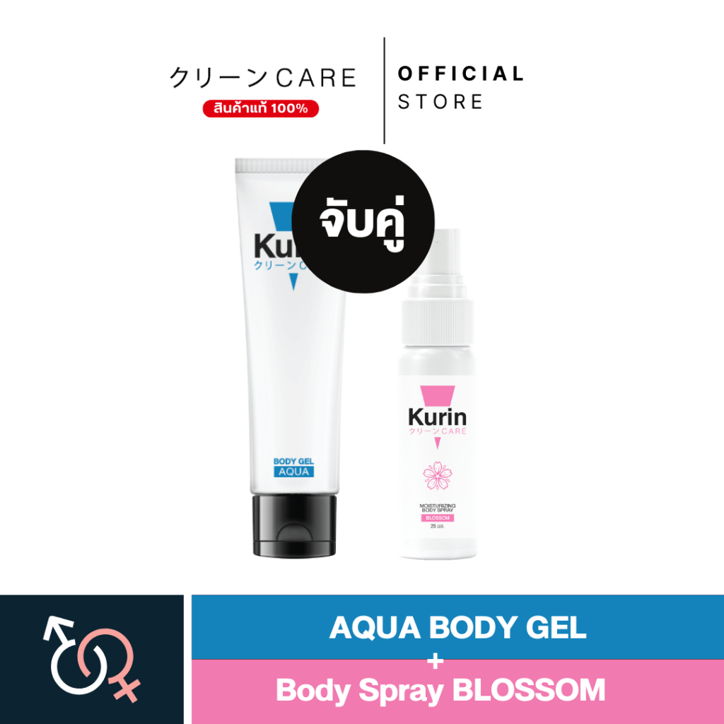 KURIN CARE AQUA BODY GEL เจลหล่อลื่น สูตรน้ำ ขนาด 100 ml และ BODY SPRAY BLOSSOM สเปรย์ฉีดบำรุงผิวกาย ขนาด 25 ml.