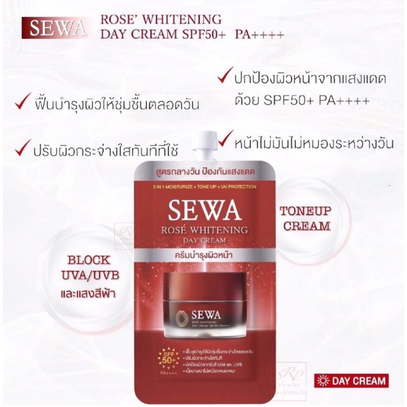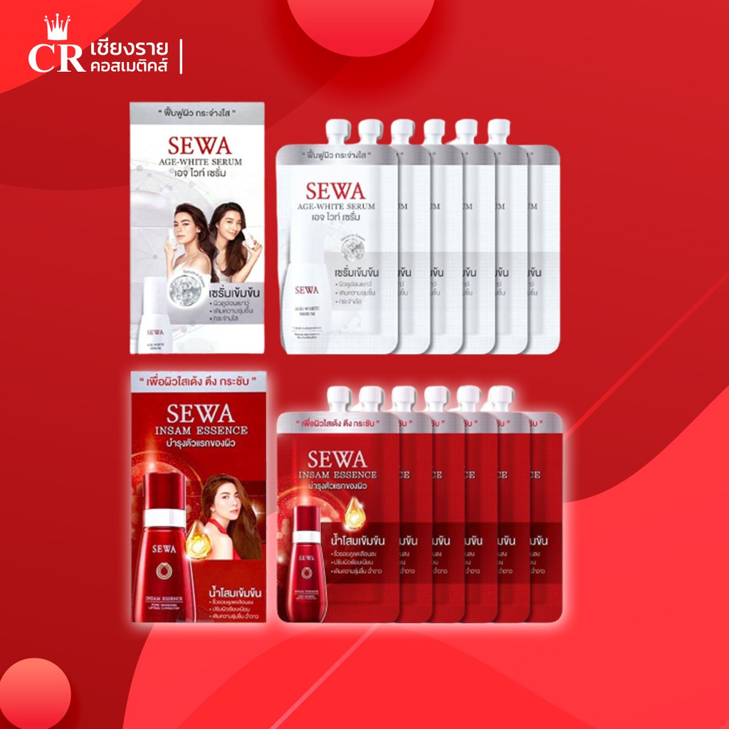 Sewa เซวาครีมซอง Insam Essence น้ำโสมเซวา, เซวา โรเซ่ ไวท์เทนนิ่ง เดย์ครีม,เซว่า เอจ ไวท์ เซรั่ม (1ซอง 8มล.)