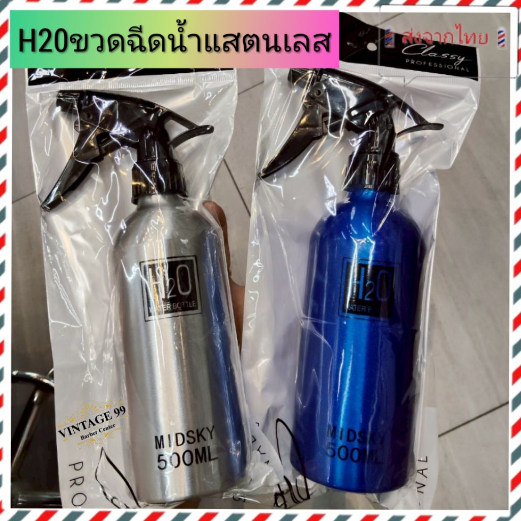 🇹🇭ส่งจากไทย🇹🇭กระบอกฉีดน้ำ ลายH2O อะลูมิเนียม 500 ml. แข็งแรง ทนทาน หมุนปรับน้ำได้