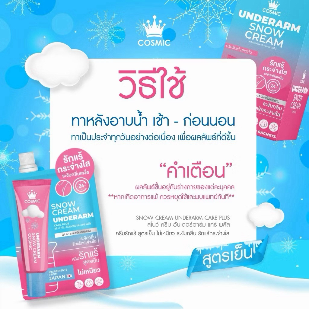 (1ซอง) ครีมรักแร้เต่าเย็น คอสมิค ครีมทารักแร้ สูตรเย็น Cosmic Snow Cream