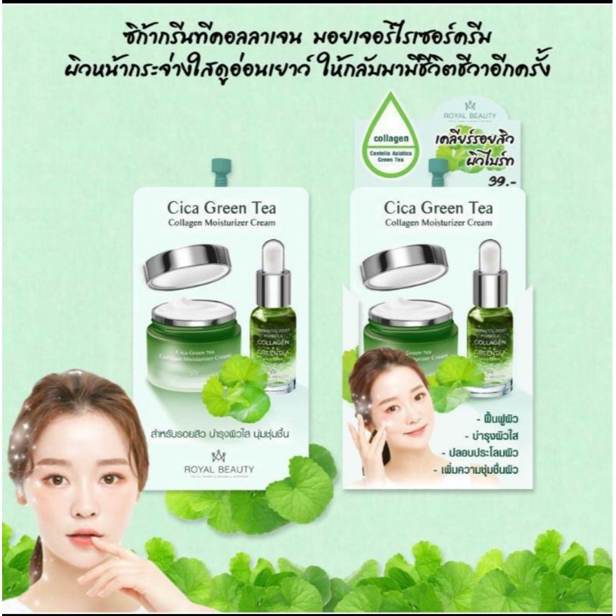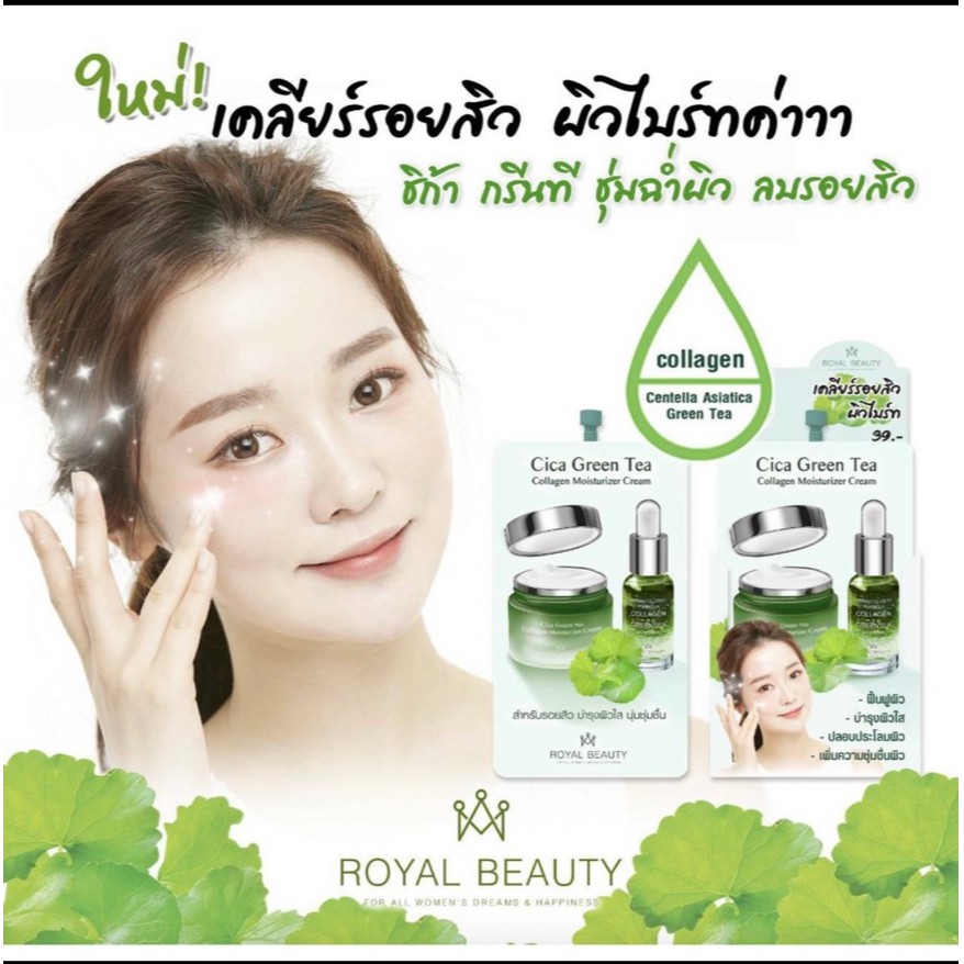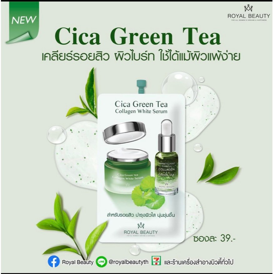 Royal Beauty Cica Green Tea Collagen White Serum 8g×6ซอง 🌟 รอยัล บิวตี้ ซิก้า กรีนที คอลลาเจน ไวท์ เซรั่ม บำรุงผิวหน้า