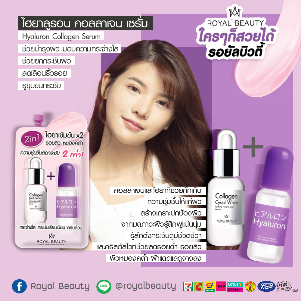 รอยัลบิวตี้ ไฮยาลูรอน คอลลาเจน เซรั่ม 8กรัม [ แบบซอง ]