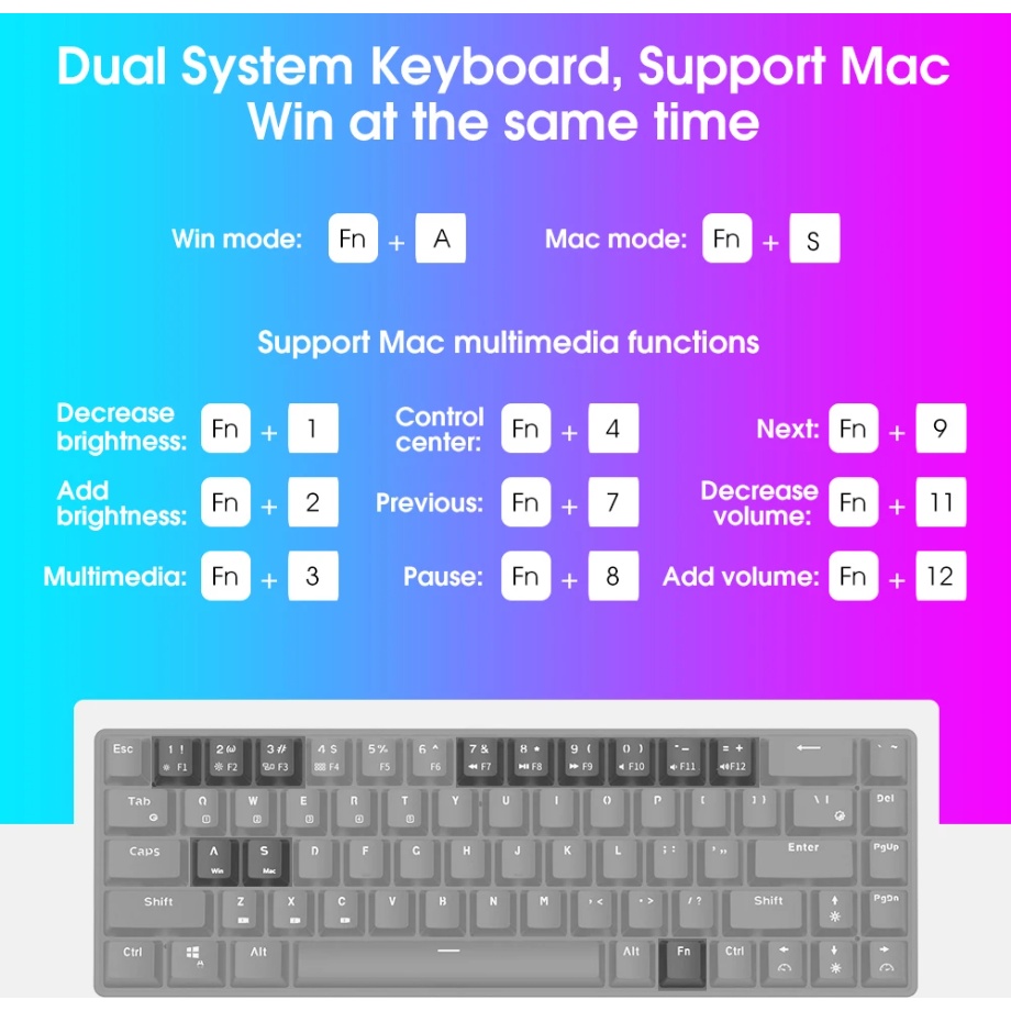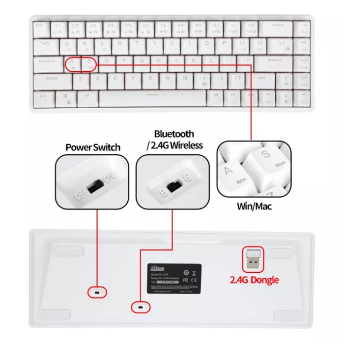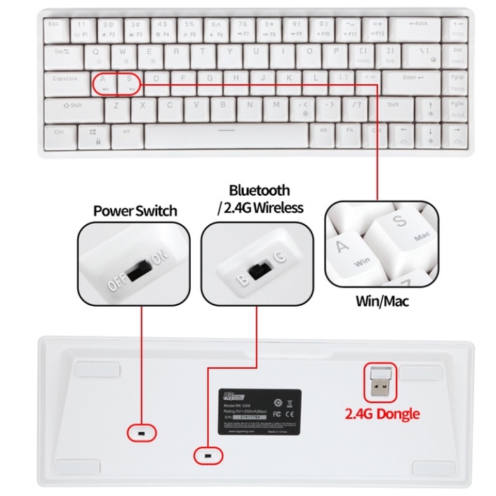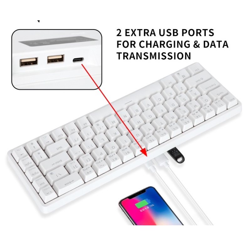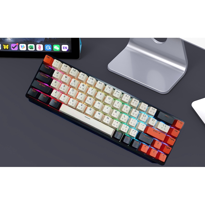 คีย์บอร์ด ไร้สาย Royal Kludge RK68 RGB Hotswap USB HUB คีย์บอร์ดเกมมิ่งคีย์ไทย ไร้สายบลูทูธและมีสาย เปลี่ยนสวิตซ์ได้ เลเซอร์ไทย - English