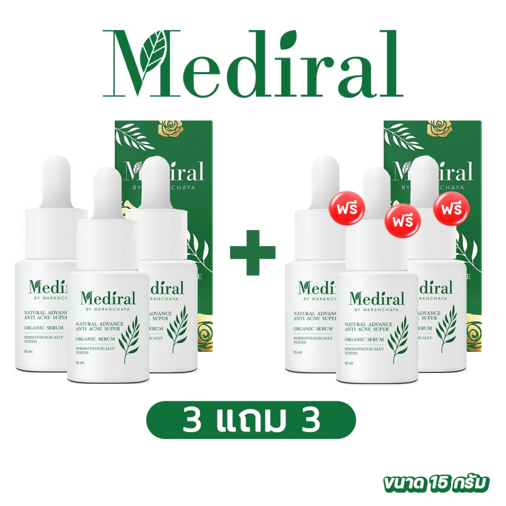 ส่งฟรี!! ✅ 3 แถม 3 ✅ เมดิรอล Mediral เซรั่ม ร ักษาสิว สูตรออร์แกนิค ธรรมชาติ ผิวหน้า ไม่แพ้ สิวหาย ไม่เกิดซ้ำ ลบ รอย หลุม