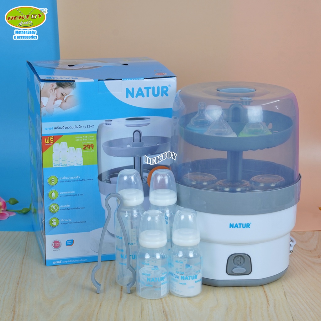 เครื่องนึ่งขวดนม Natur เนเจอร์ เครื่องนึ่งขวดนมไฟฟ้าไม่อบแห้ ง SZ-2(89906) แถมฟรีขวดนม4ขวด