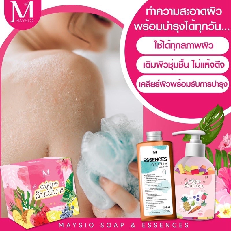 สบู่สูตรลับ+เอสเซ้นส์ MAYSIO ESSENCE SERUM สบู่สูตรลับเร่งขาว สบู่โดส 5 สูตรในขวดเดียว