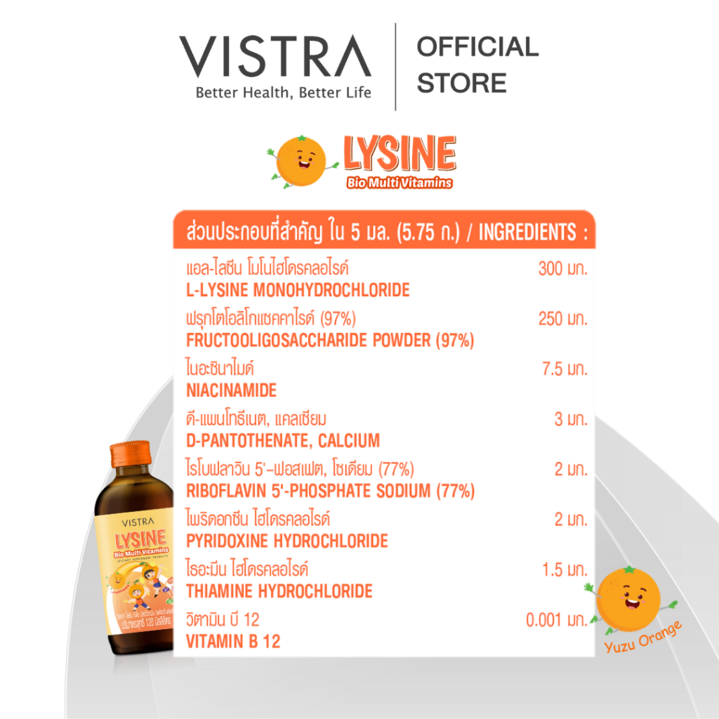 VISTRA Lysine Bio Multivitamin - วิสทร้า ไลซีน มัลติวิตามิน 120 ML (วิตามินแบบน้ำ) #12541