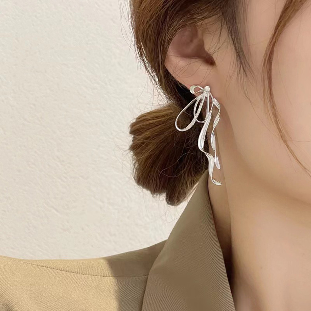 【YUE】อารมณ์ไม่สม่ําเสมอโบว์ต่างหูสตั๊ดสําหรับผู้หญิงสาวบุคลิกภาพออกแบบคริสตัลเรขาคณิตวางห้อยเครื่องประดับอุปกรณ์เสริมของขวัญ