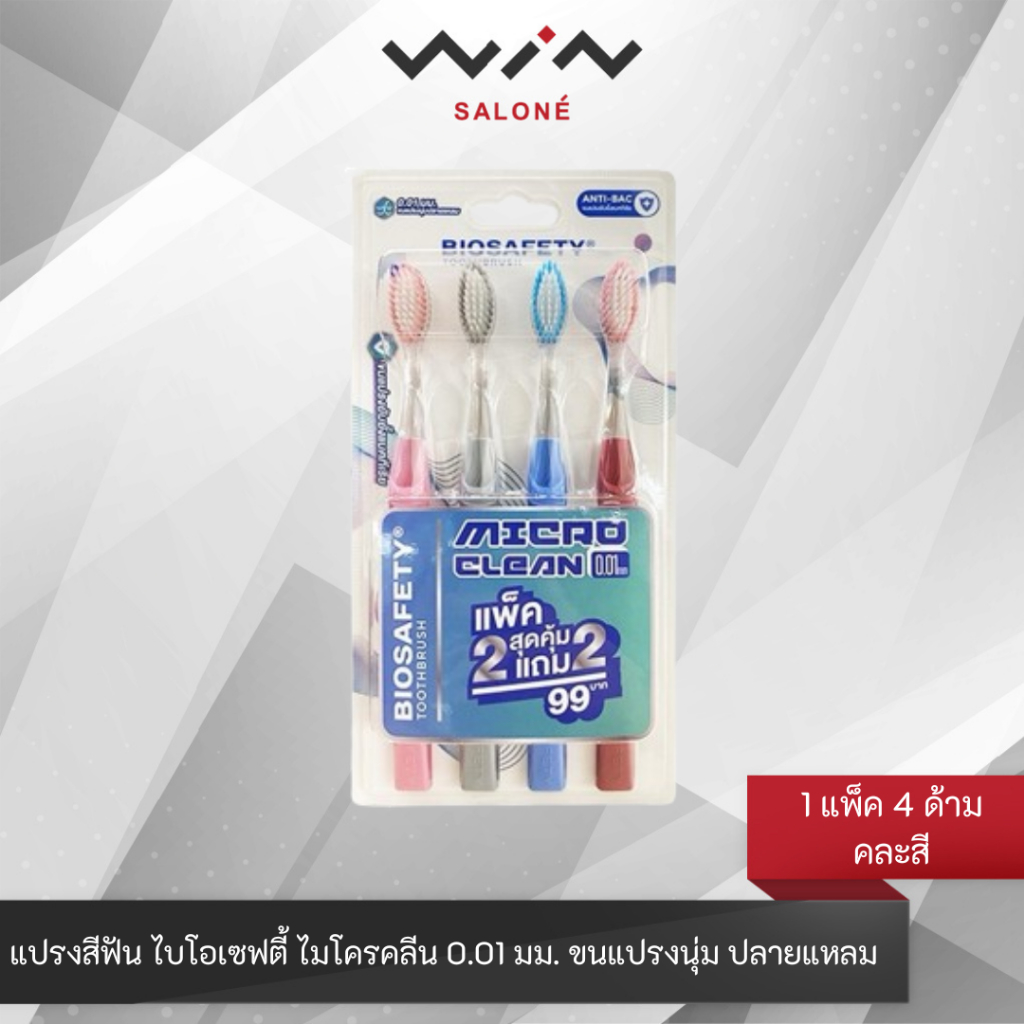 [1 แพ็ค 4 ด้าม คละสี] Biosafety toothbrush แปรงสีฟัน ไบโอเซฟตี้ ไมโครคลีน 0.01 มม. ขนแปรงนุ่ม ปลายแหลม