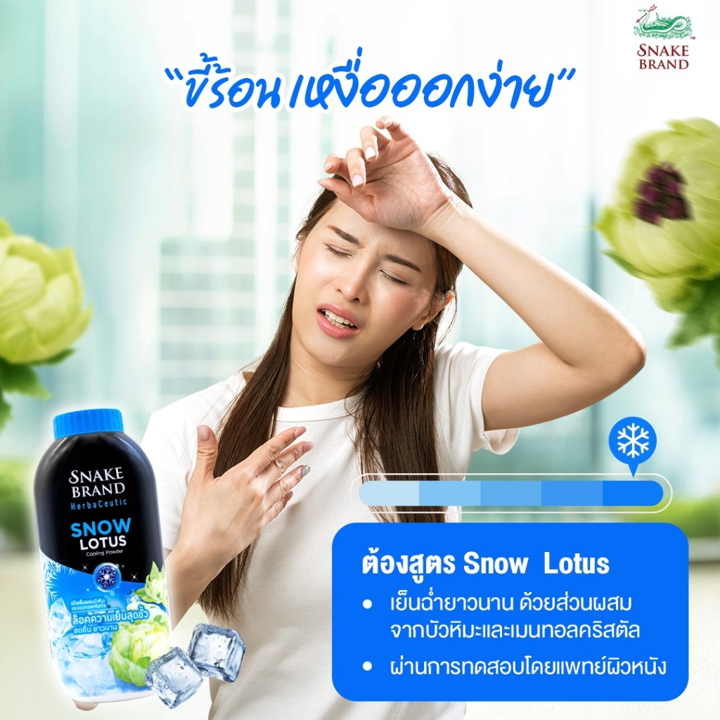 Snake Brand Herbaceutic แป้งเย็น สโนว์ โลตัส 250 กรัม x 2 Snow Lotus Cooling Powder เย็นสุดขั้ว สดชื่น