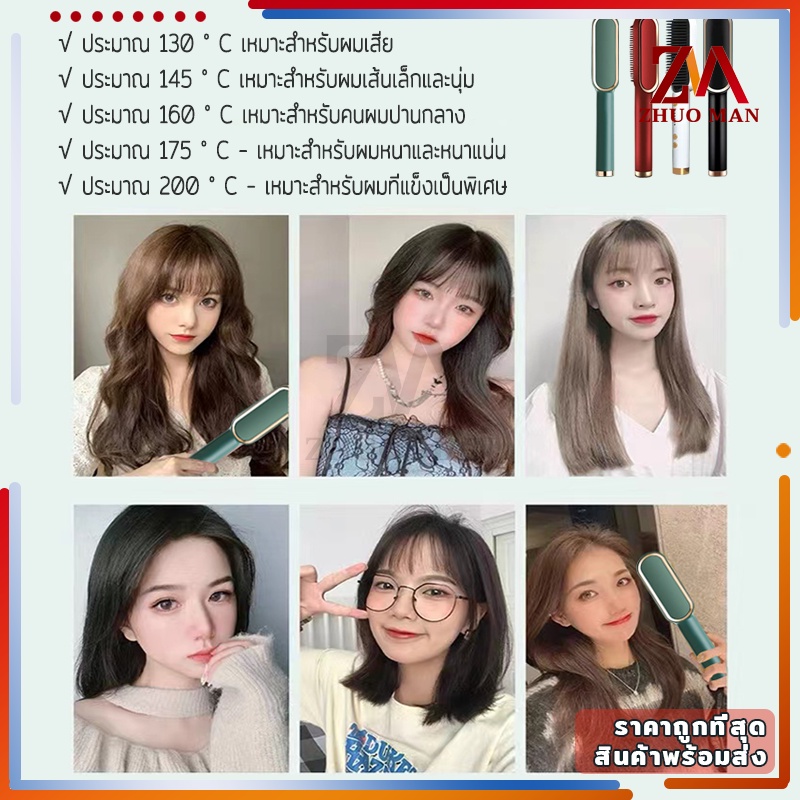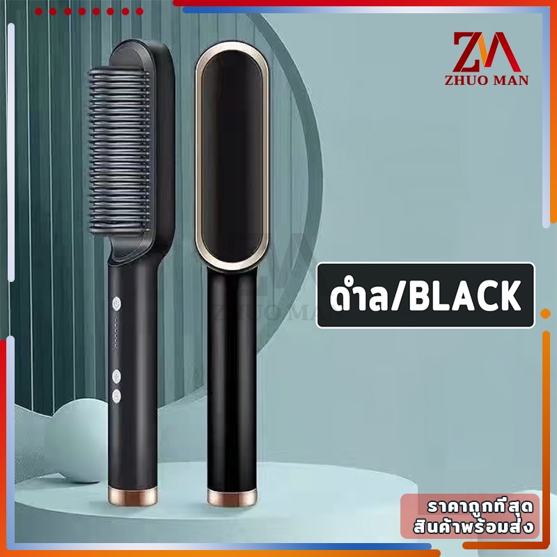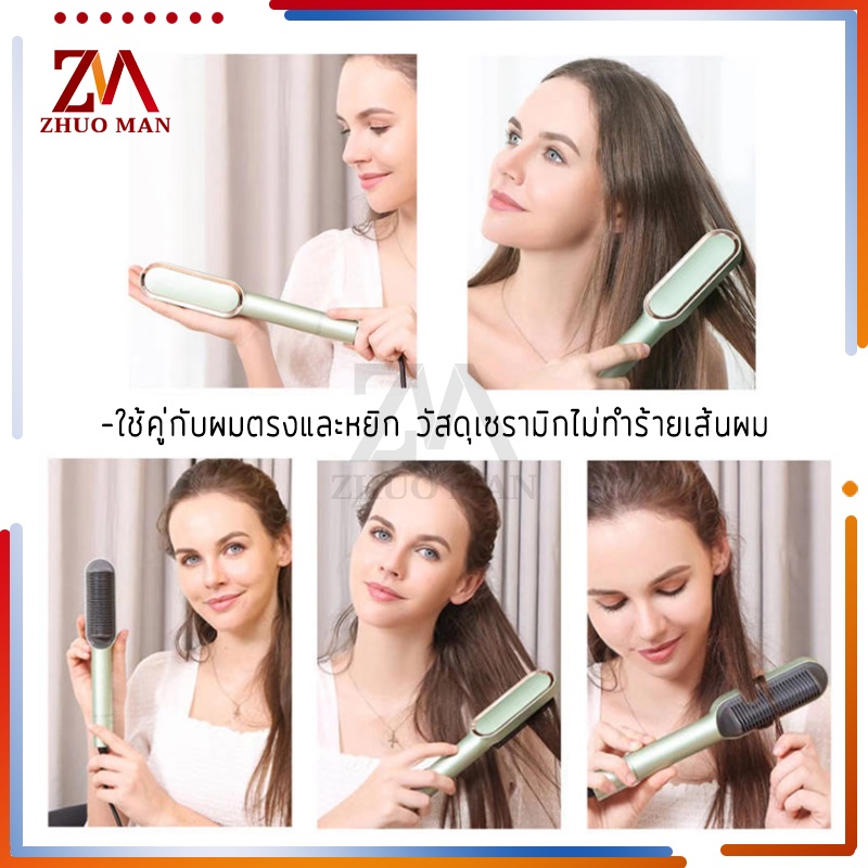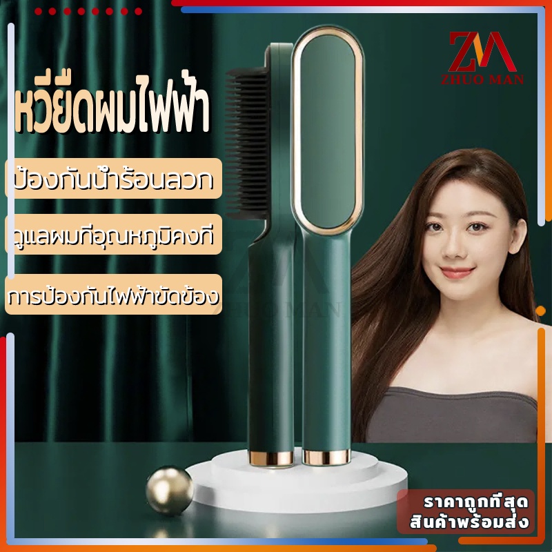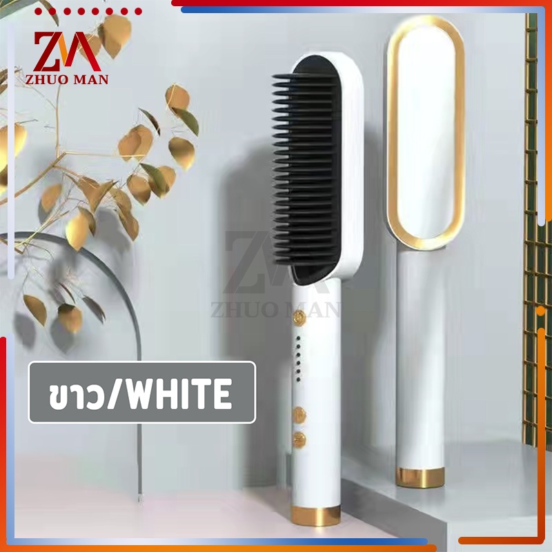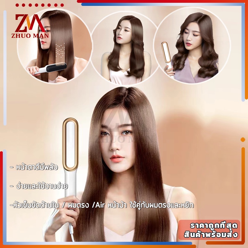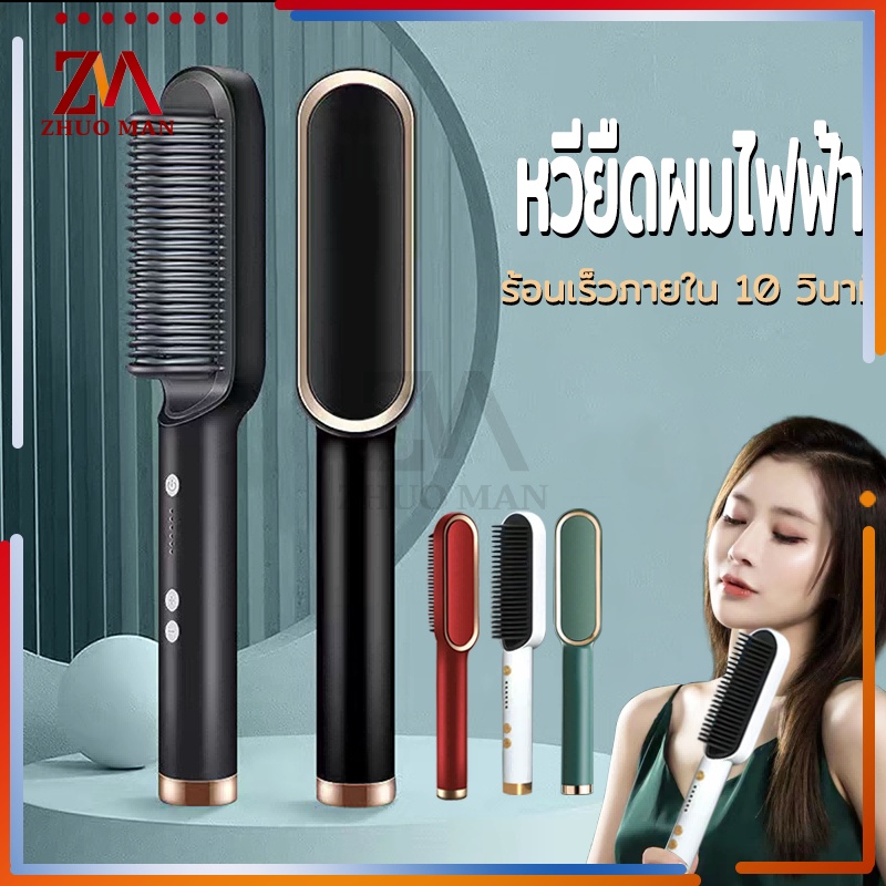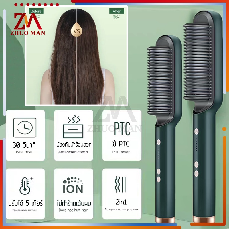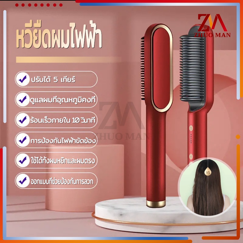 หวียืดผมไฟฟ้า ที่ม้วนผมไฟฟ้า หวีไฟฟ้า2in1 ใช้คู่กับผมตรงและหยิก หวีไอออนปกป้องผม ปรับอุณภูมิได้ ร้อนเร็วภายใน 10 วินาที