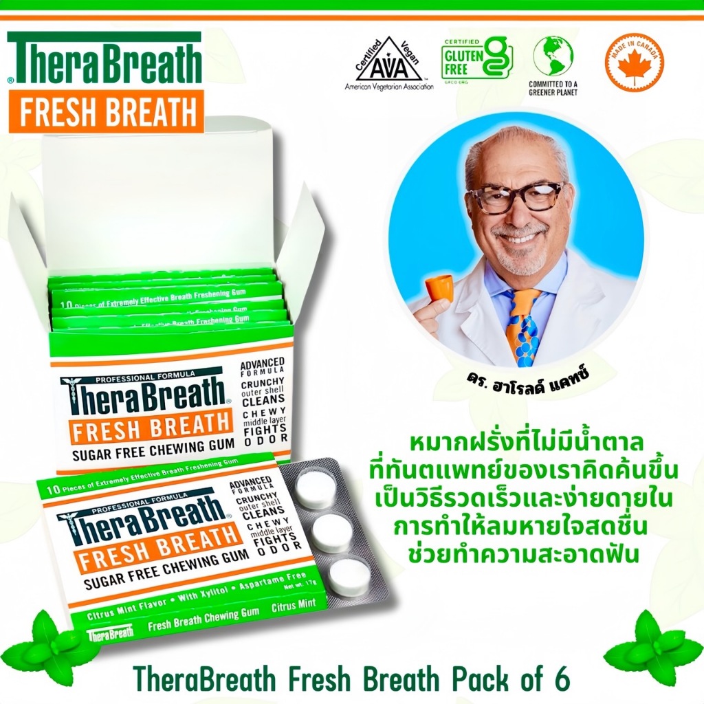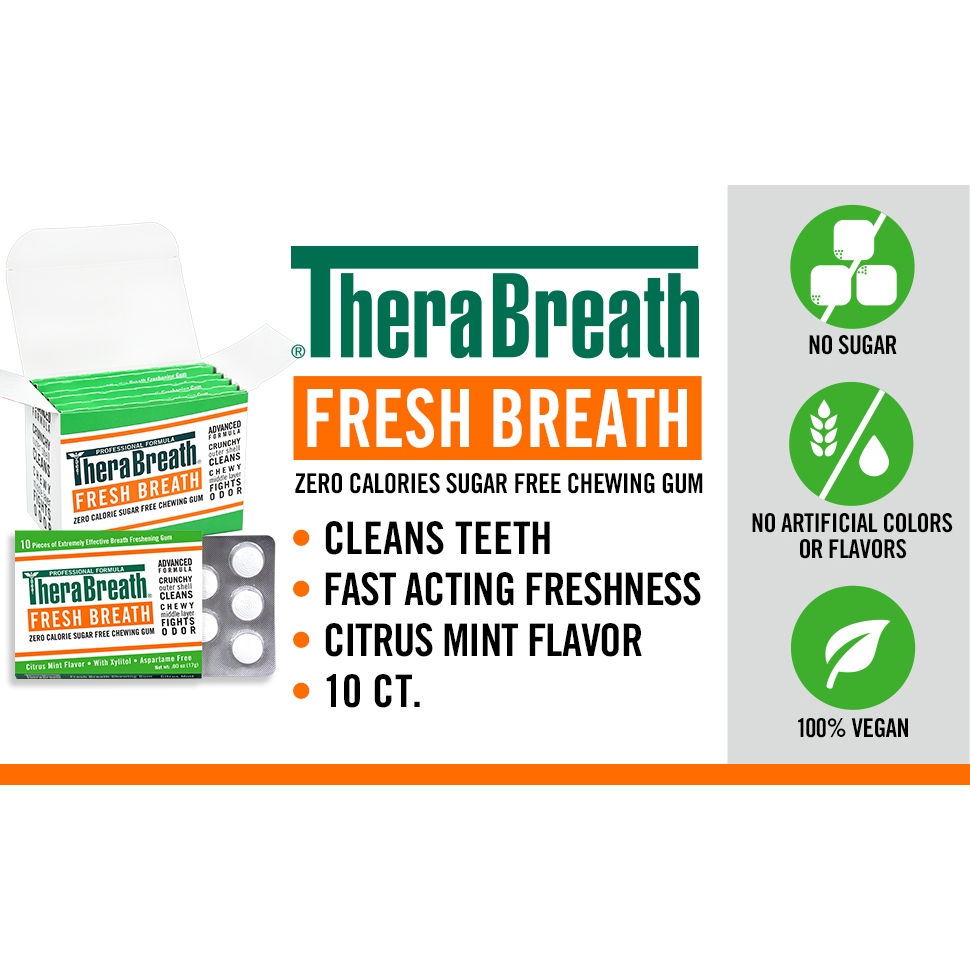 NEWแบบยกกล่อง นำเข้า🇺🇸 TheraBreath Fresh Breath Chewing Gum with ZINC, Citrus Mint Flavor, - หมากฝรั่งTheraBreat