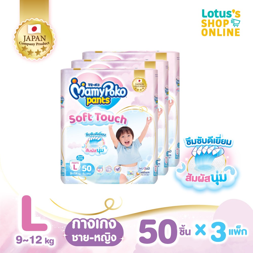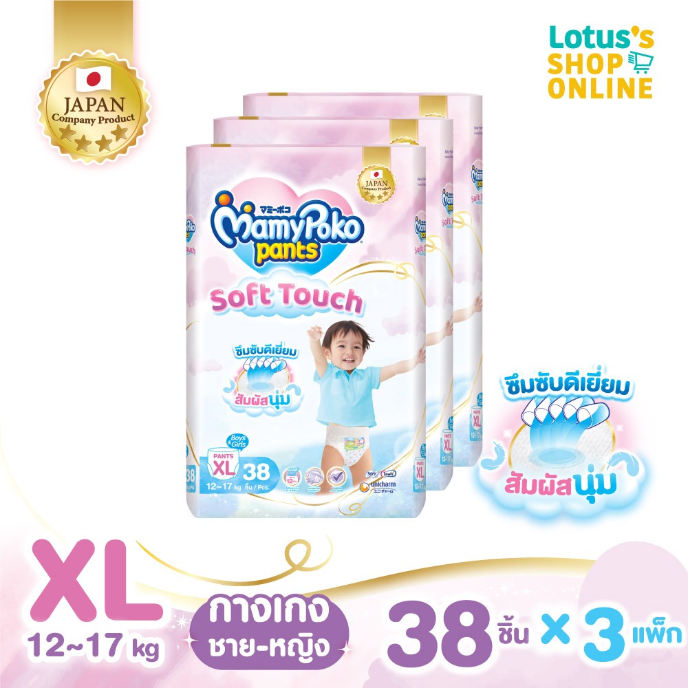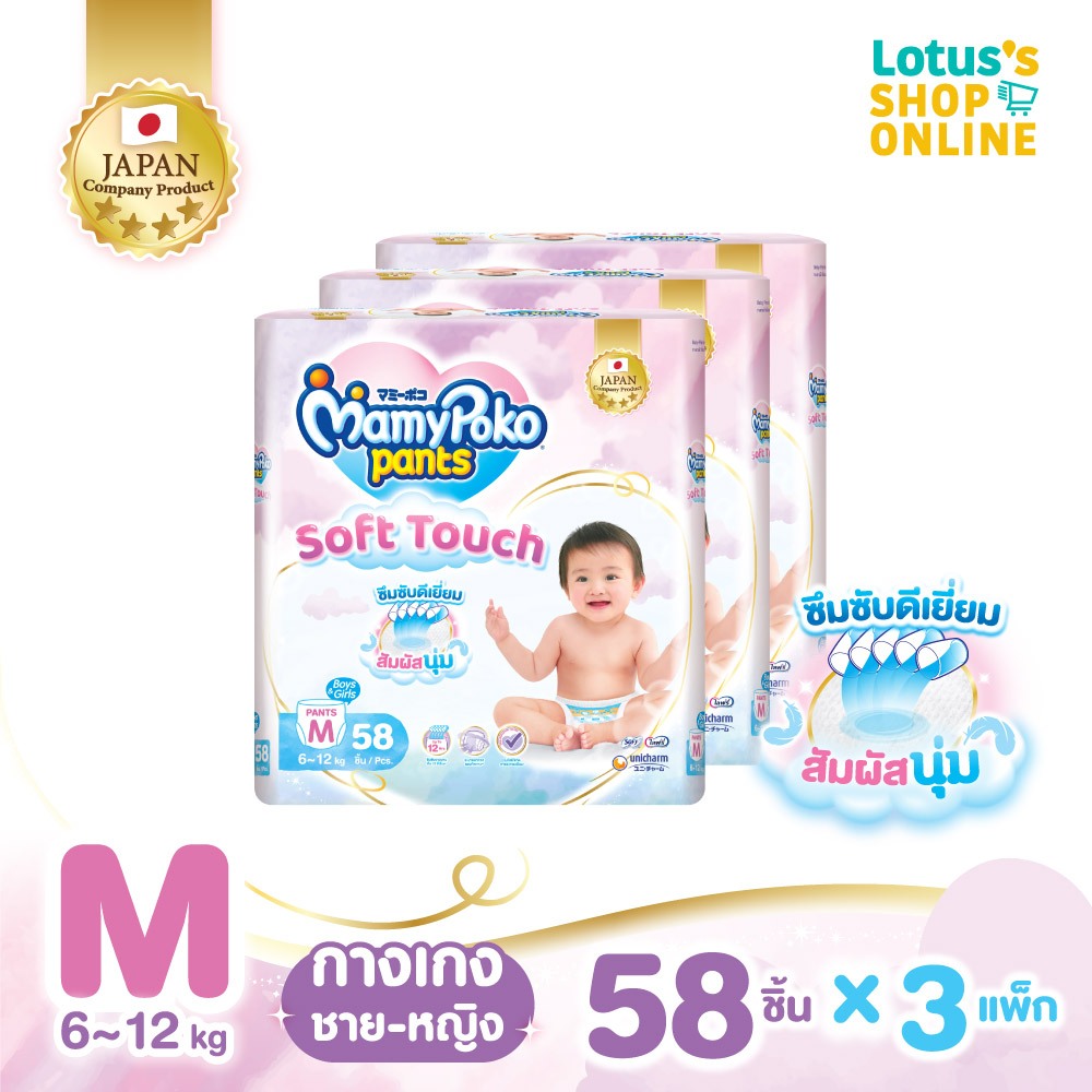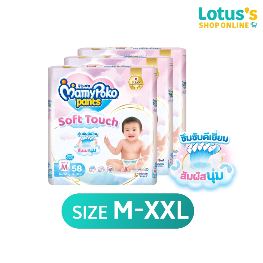 [ทั้งหมด 3 แพ็ค] มามี่โพโค กางเกงผ้าอ้อมเด็ก แพ้นท์ ซอฟต์ ทัช ไซส์ M-XXL MAMYPOKO PANTS SOFT TOUCH DIAPER PANTS M-XXL