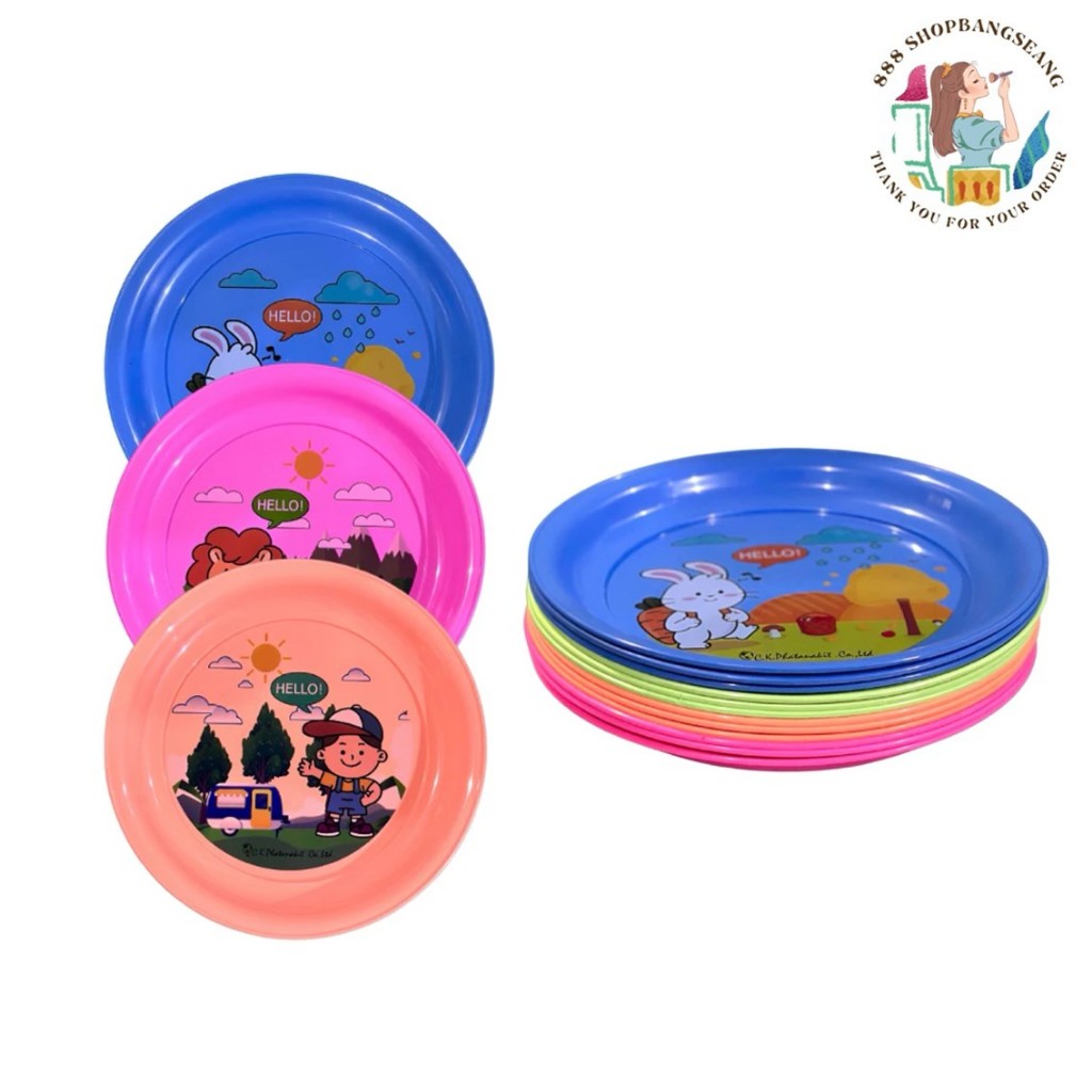 ถาดพลาสติกกลม ลายการ์ตูน ถาดเสิร์ฟอาหาร No.746