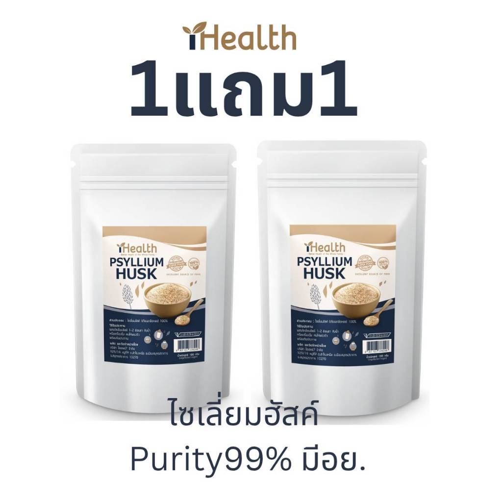 1แถม1 iHealth Psyllium Husk(Purity99%) ไซเลี่ยมฮัสค์ ไฟเบอร์สูง ขับถ่ายดี มี อย. (100g แถม100g)