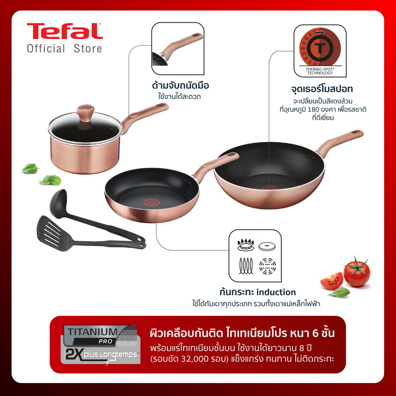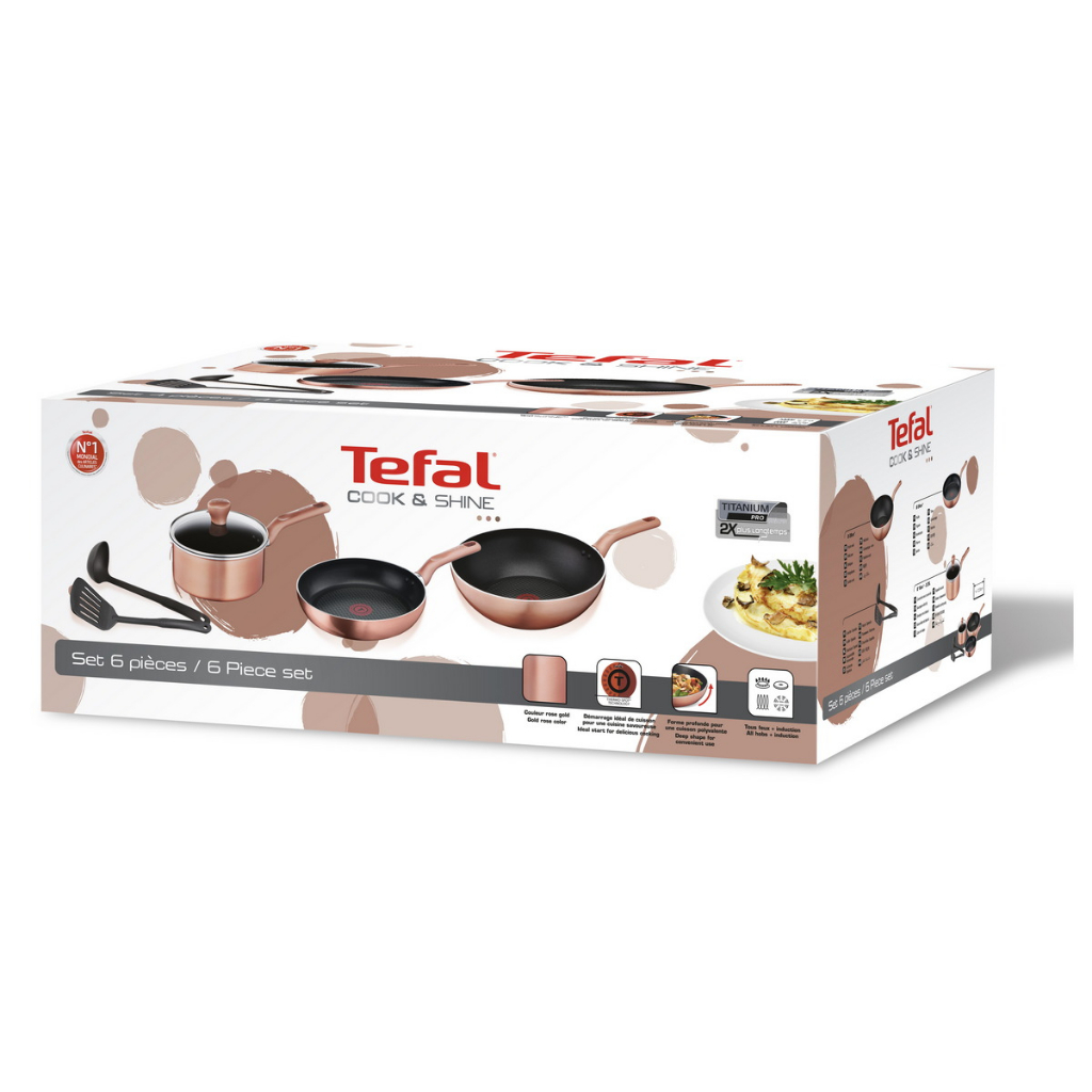 เซ็ตเครื่องครัว COOK & SHINE 6 ชิ้น Tefal รุ่น G803S695 สี Rose Gold