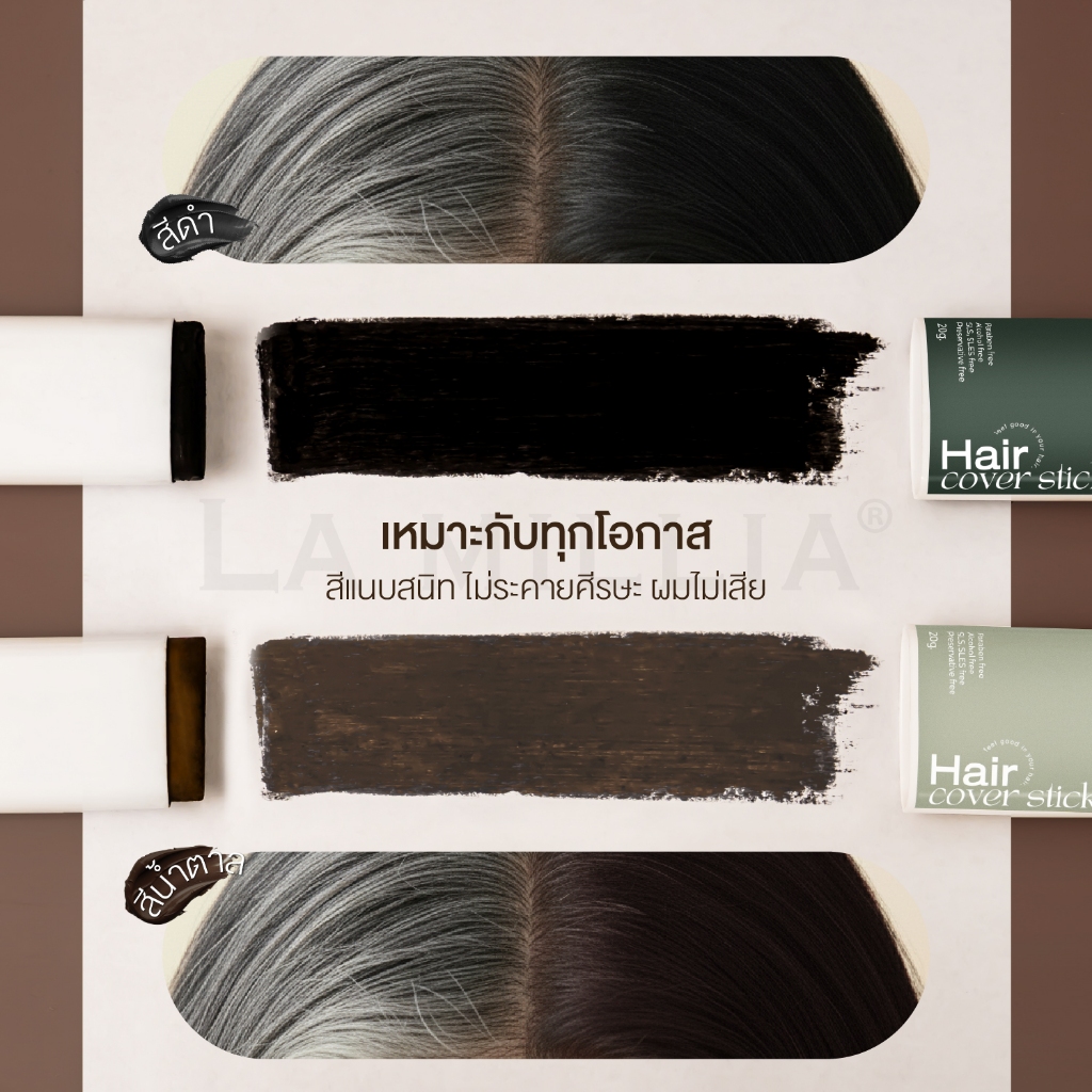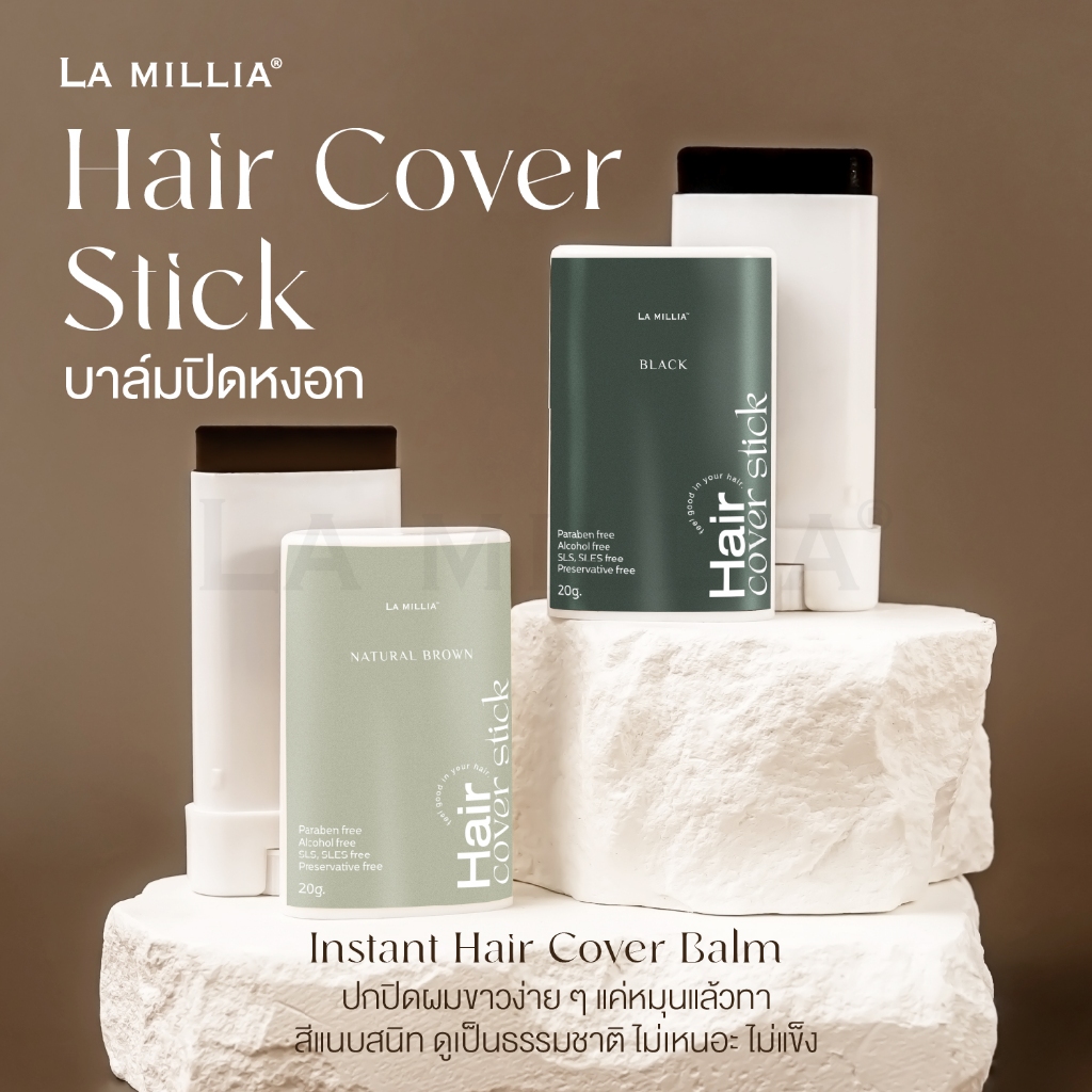 LA MILLIA HAIR COVER STICK บาล์ม ปิดผมขาว ปิดผมหงอก แบ่งแท่ง กันน้ำใช้ได้ทุกวัน ไม่เหนียวเหนอะ 20g.