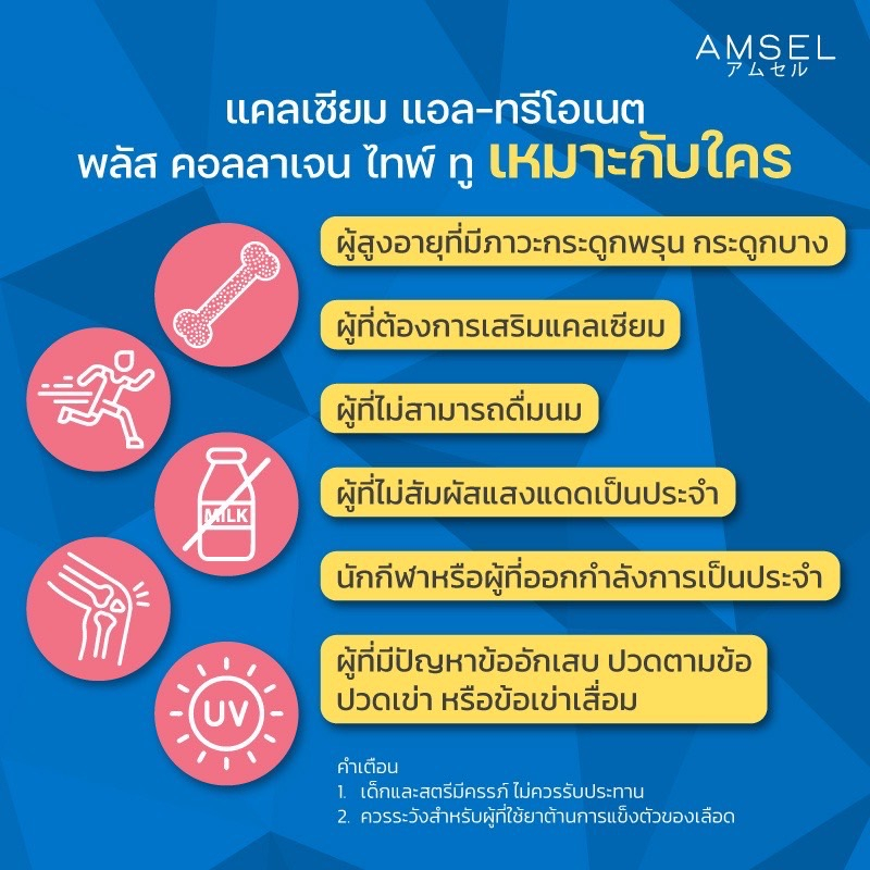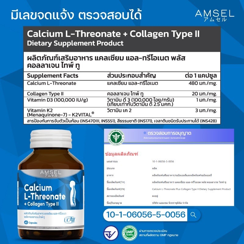 3ขวดส่งของทุกวัน Amsel Calcium L-Threonate+Collagen Type II 60 แคปซูล แอมเซลแคลเซียม แอลทรีโอเนต พลัส คอลลาเจนไทพ์ทู