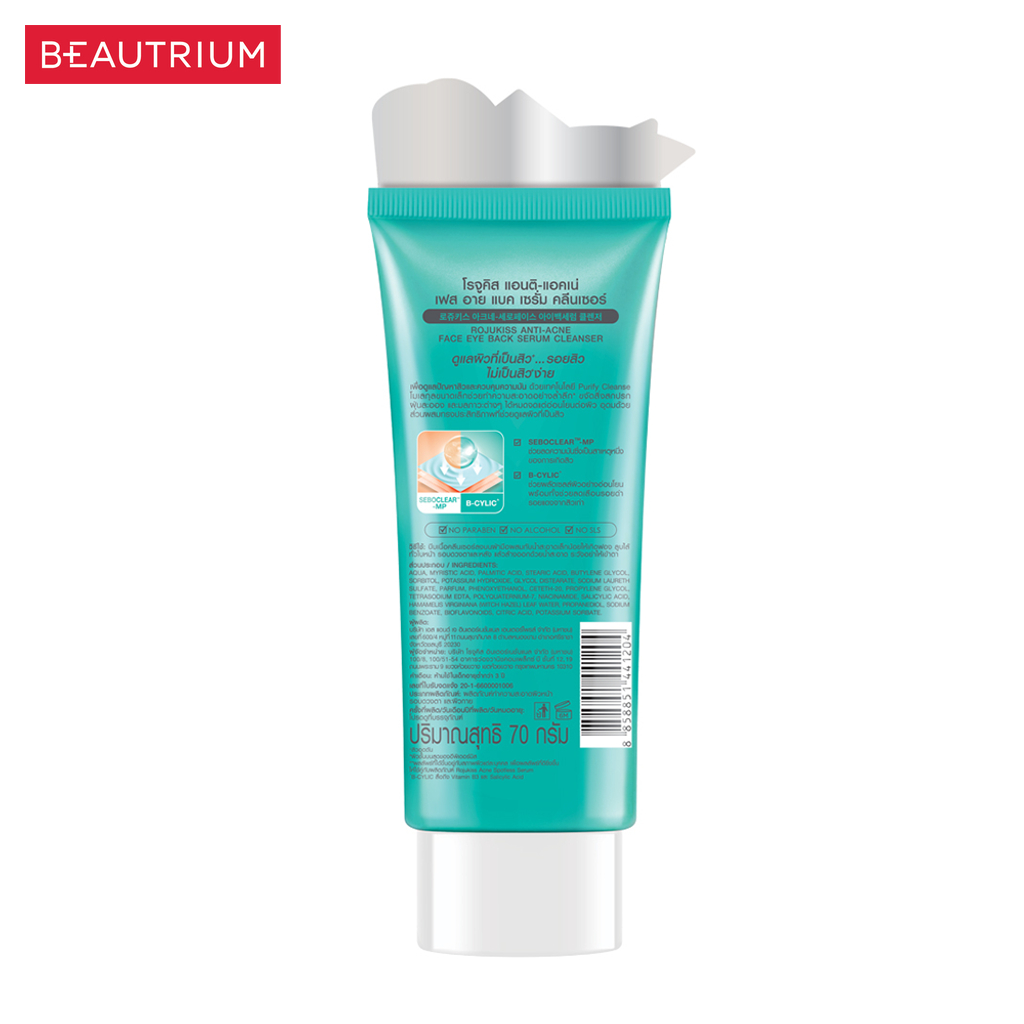 ROJUKISS Anti-Acne Face Eye Back Serum Cleanser ผลิตภัณฑ์ทำความสะอาดผิวหน้า 70g