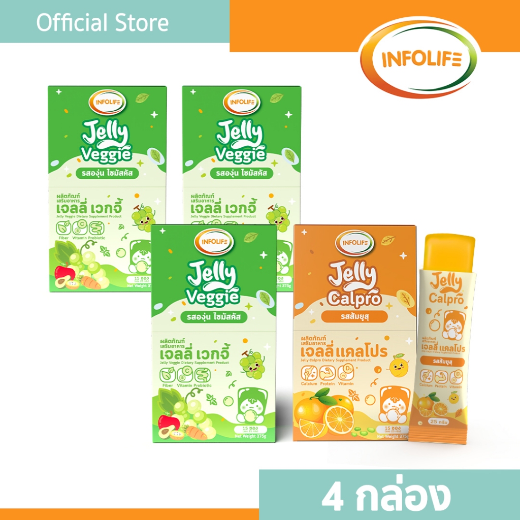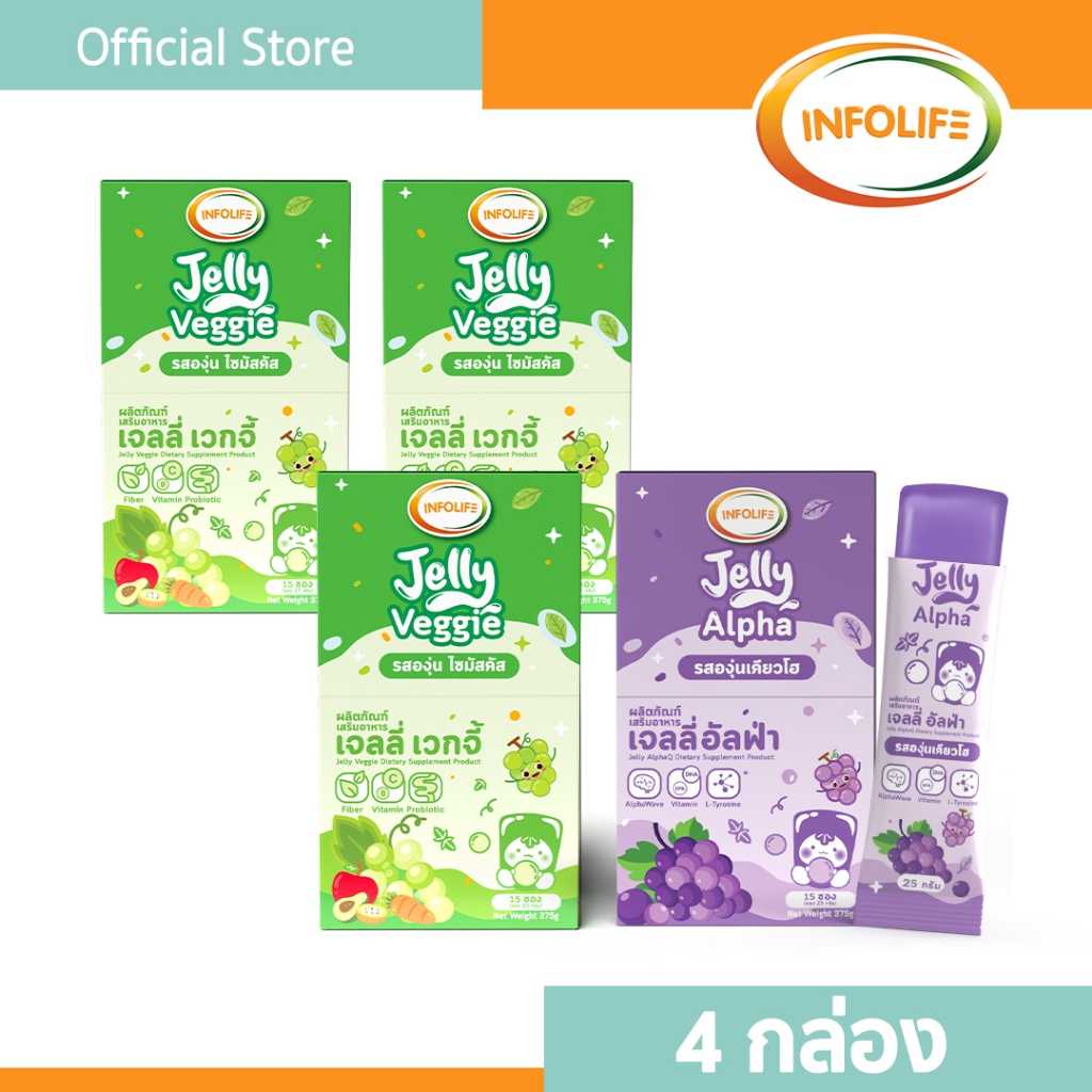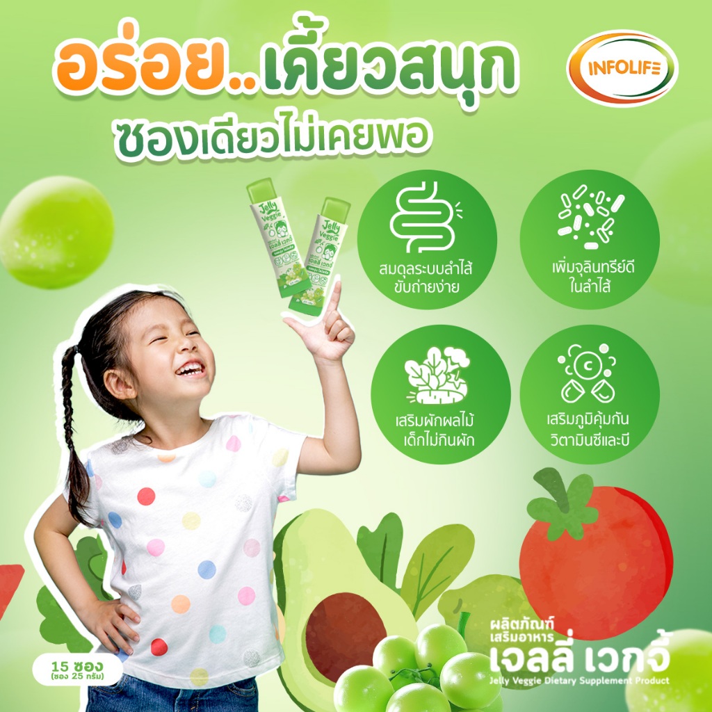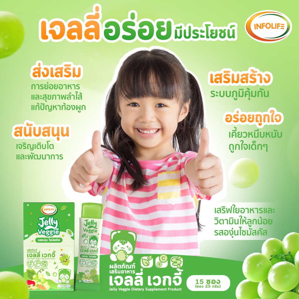 (4 กล่อง) อินโฟว์ไลฟ เจลลี่เวกจี้ กินผักยาก ท้องผูก ปรับสมดุลลำไส้ เสริมภูมิคุ้มกัน รสองุ่นไซมัสคัส สำหรับเด็ก ส่งฟรี