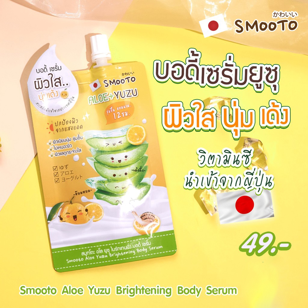 (6ซอง/กล่อง) Smooto Aloe Yuzu Boby Serum สมูทโตะ อโล ยูซุ ไบร์ทเทนนิ่ง บอดี้ เซรั่ม (3079)