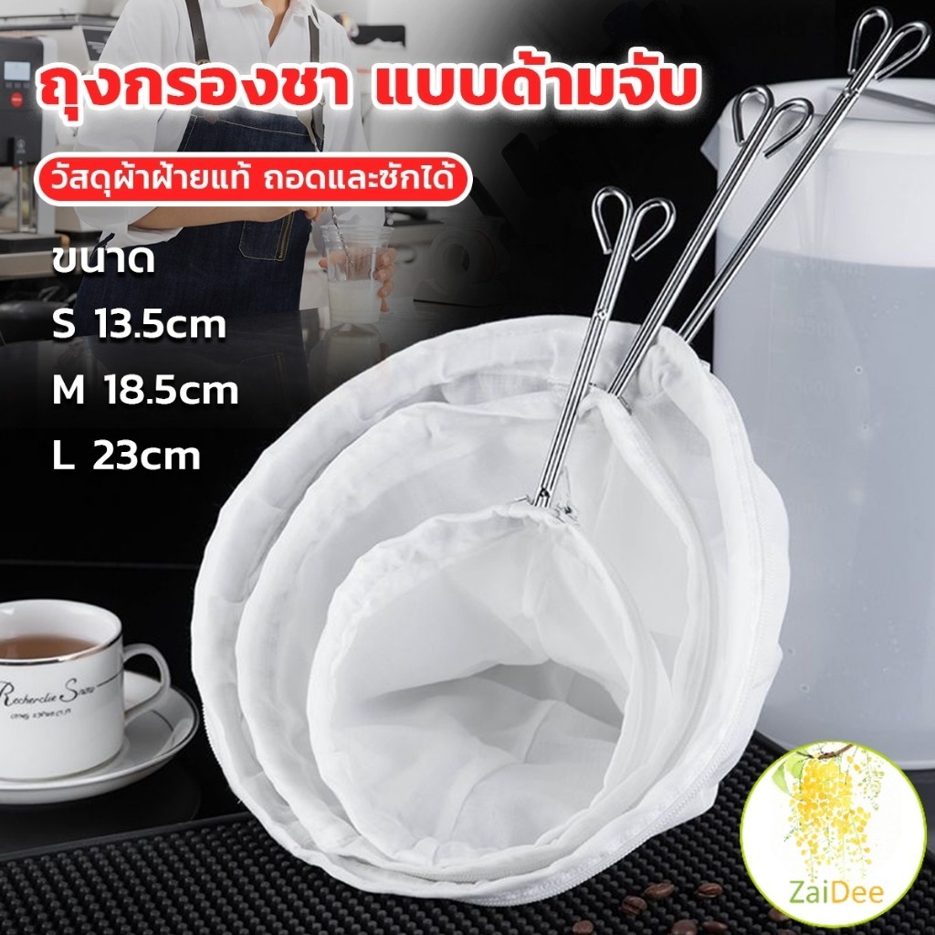 ถุงผ้าชงชา ถุงกรองนมถั่วเหลือง กรองกากกาแฟ วัสดุผ้าฝ้าย มีด้ามจับ ขนาดใหญ่ ซักล้างได้ Milk Tea filter bag