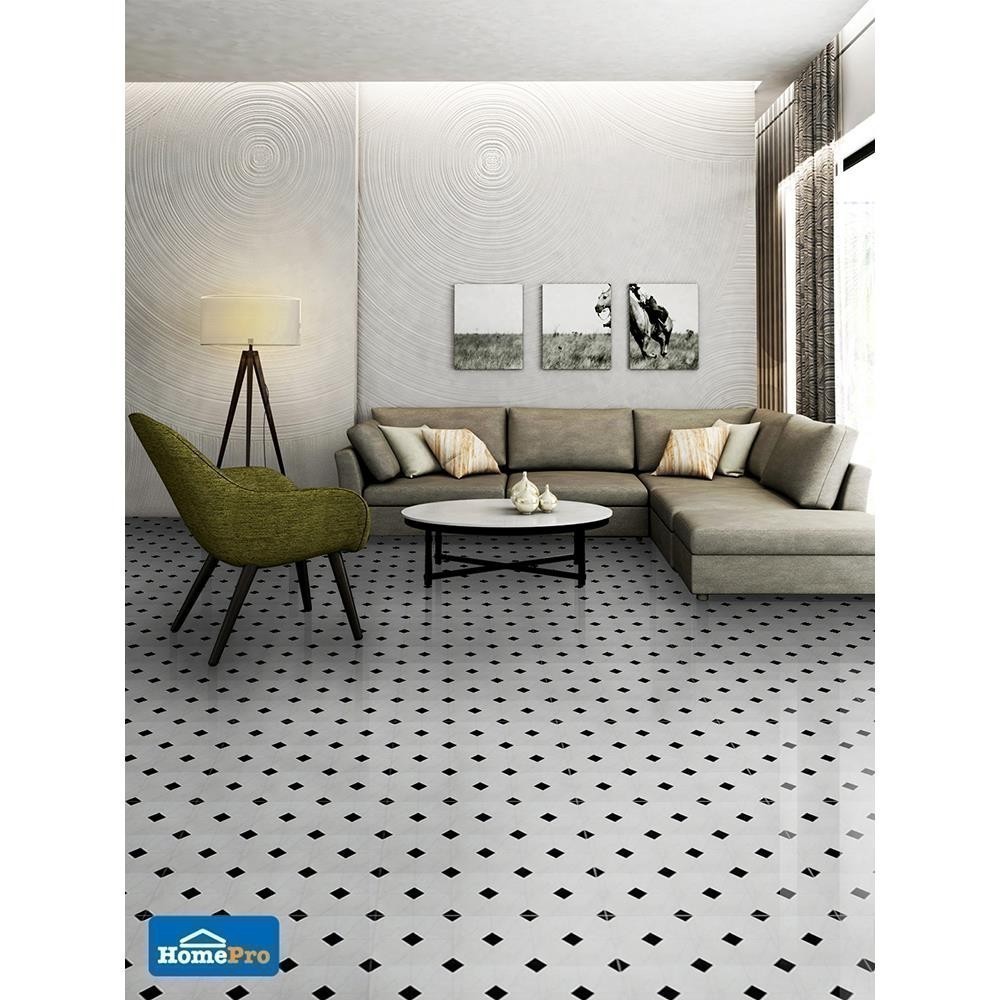 TARA กระเบื้องพื้น 40x40 ซม. ทีน่า นิว II แบล็ค ไวท์ จัดส่งโดย HomePro
