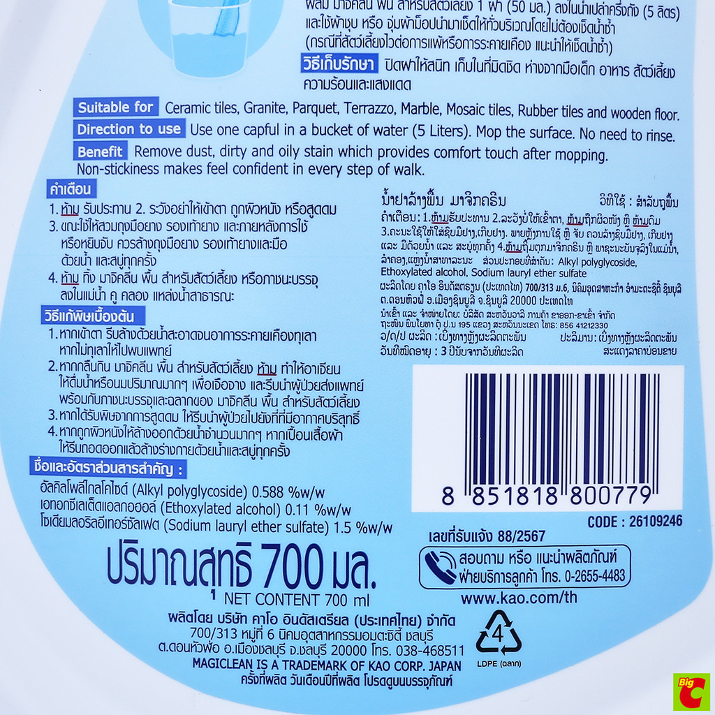 มาจิคลีน น้ำยาถูพื้น กลิ่นอควาติกเพียว 700 มล.