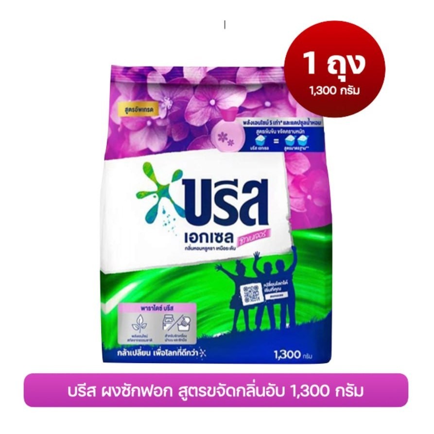 Breeze บรีสเอกเซล ผงซักฟอก 1300กรัม สูตรเข้มข้น ซักผ้าขาว ขจัดคราบ หมองคล้ำ แฟ้บซักผ้า
