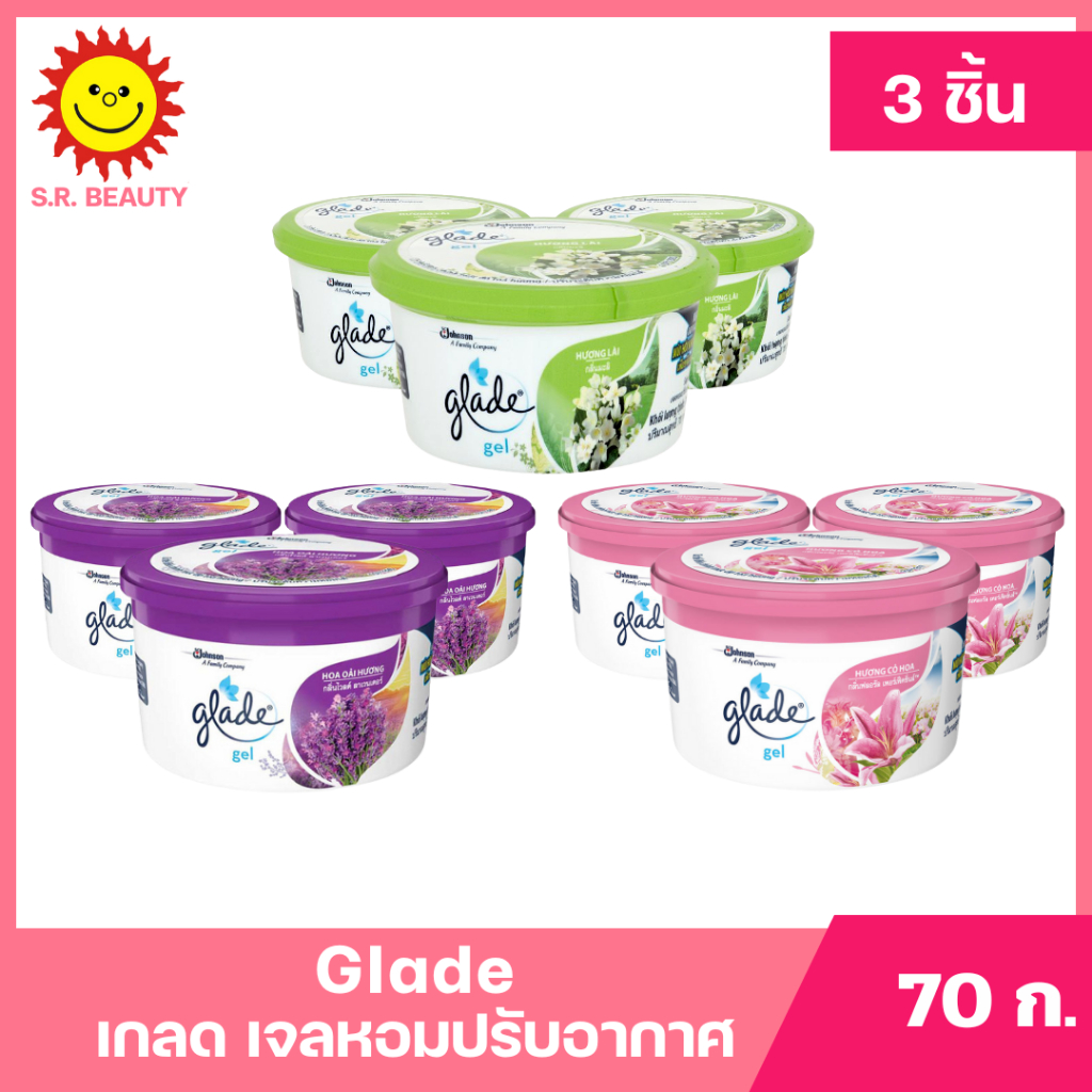 [ แพ็ค3 ] Glade เกลด เจลหอมปรับอากาศ ขจัดกลิ่นอับ ขนาด 70 กรัม (แพ็ค3ชิ้น) มี 3 กลิ่น