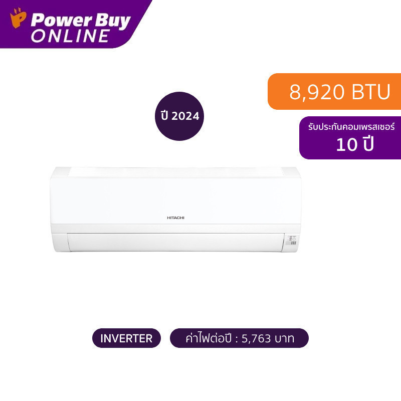 [จัดส่งพร้อมติดตั้ง] HITACHI แอร์ติดผนัง 8920 BTU Inverter รุ่น RAK-VH10PCAST + PP23S4MTH
