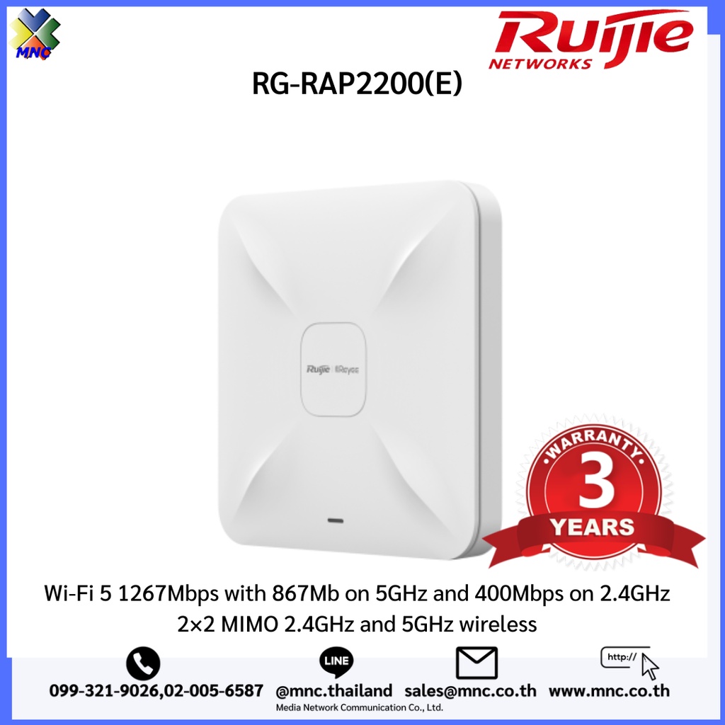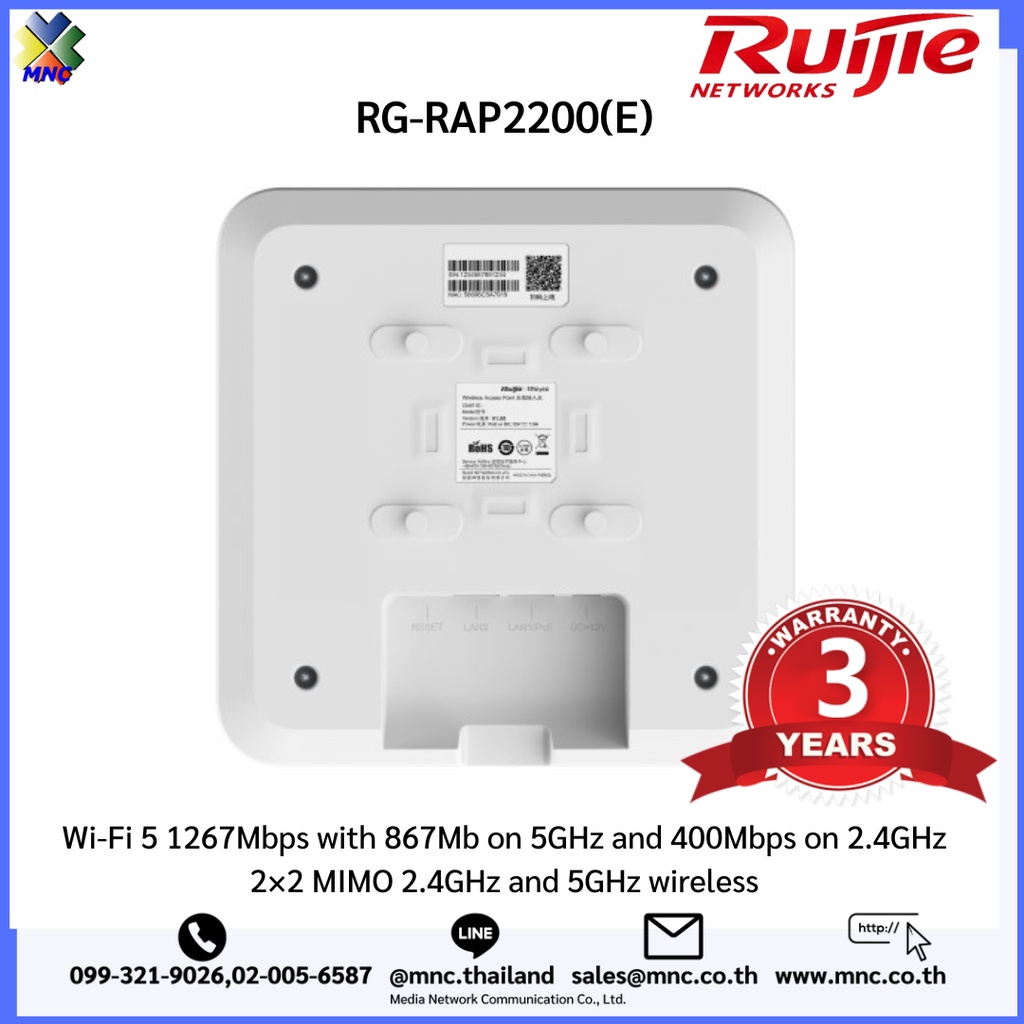 Ruijie RG-RAP2200(E) AC1300 Dual Band Ceiling Mount Access Point, 867Mbps at 5GHz + 400Mbps at 2.4GHz, 2 Gbps LAN
