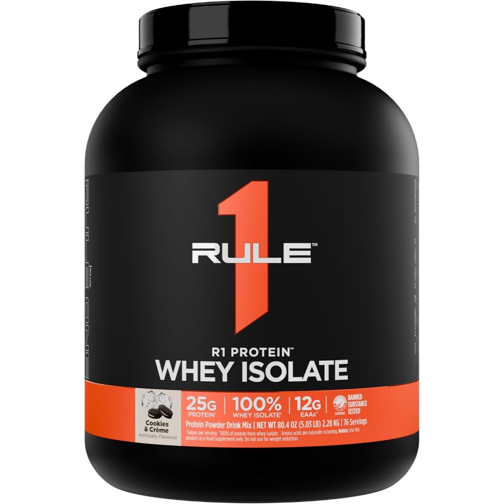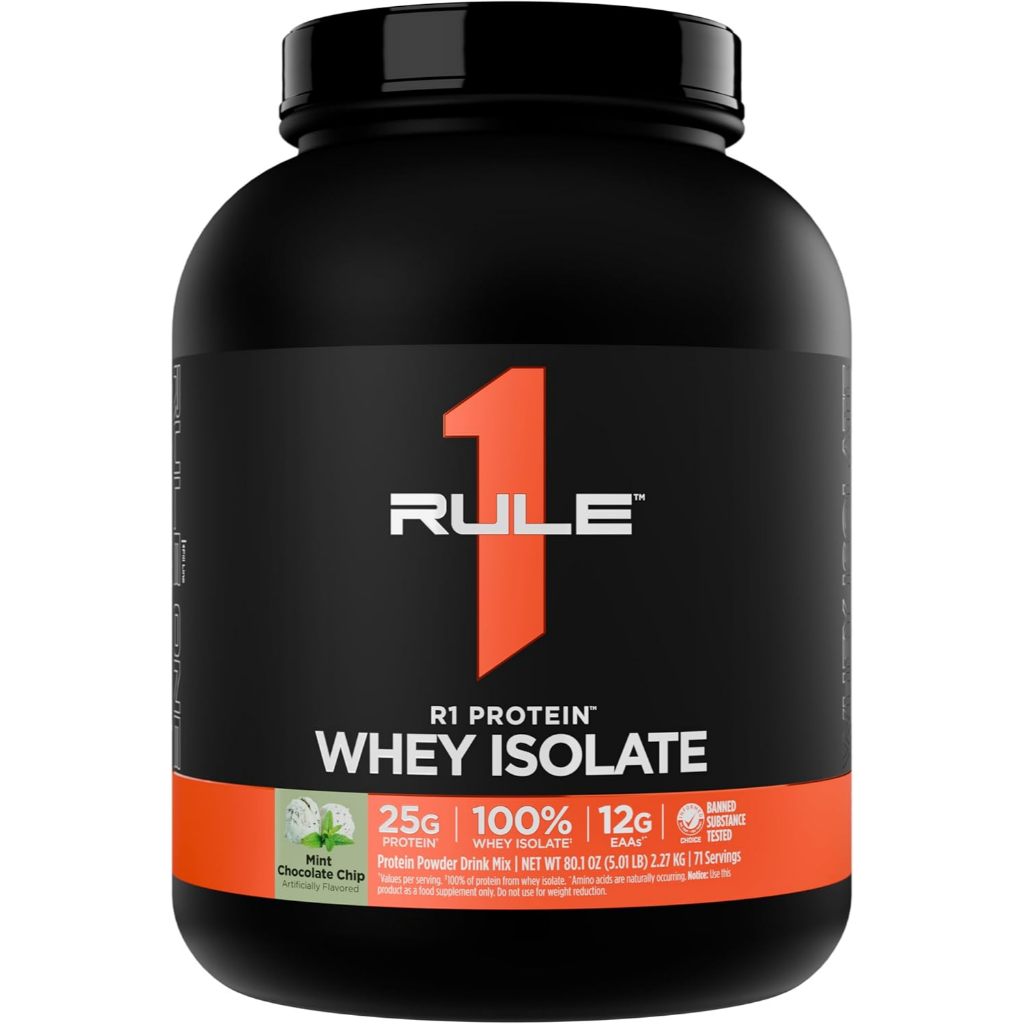 Rule 1 R1 Whey Protein Isolate Chocolate Fudge - 5 lbs Powder - 25g Whey Isolate & Hydrolysate + 6g BCAAs - 76 Servings
