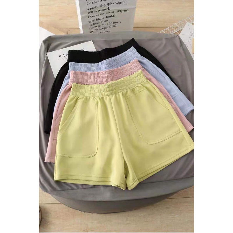 S-033 กางเกงขาสั้นลําลองสําหรับสตรีขากว้างเอวสูงขากว้างทรงหลวมขนาดพลัสเหมาะกับการเล่นฟิตเนส