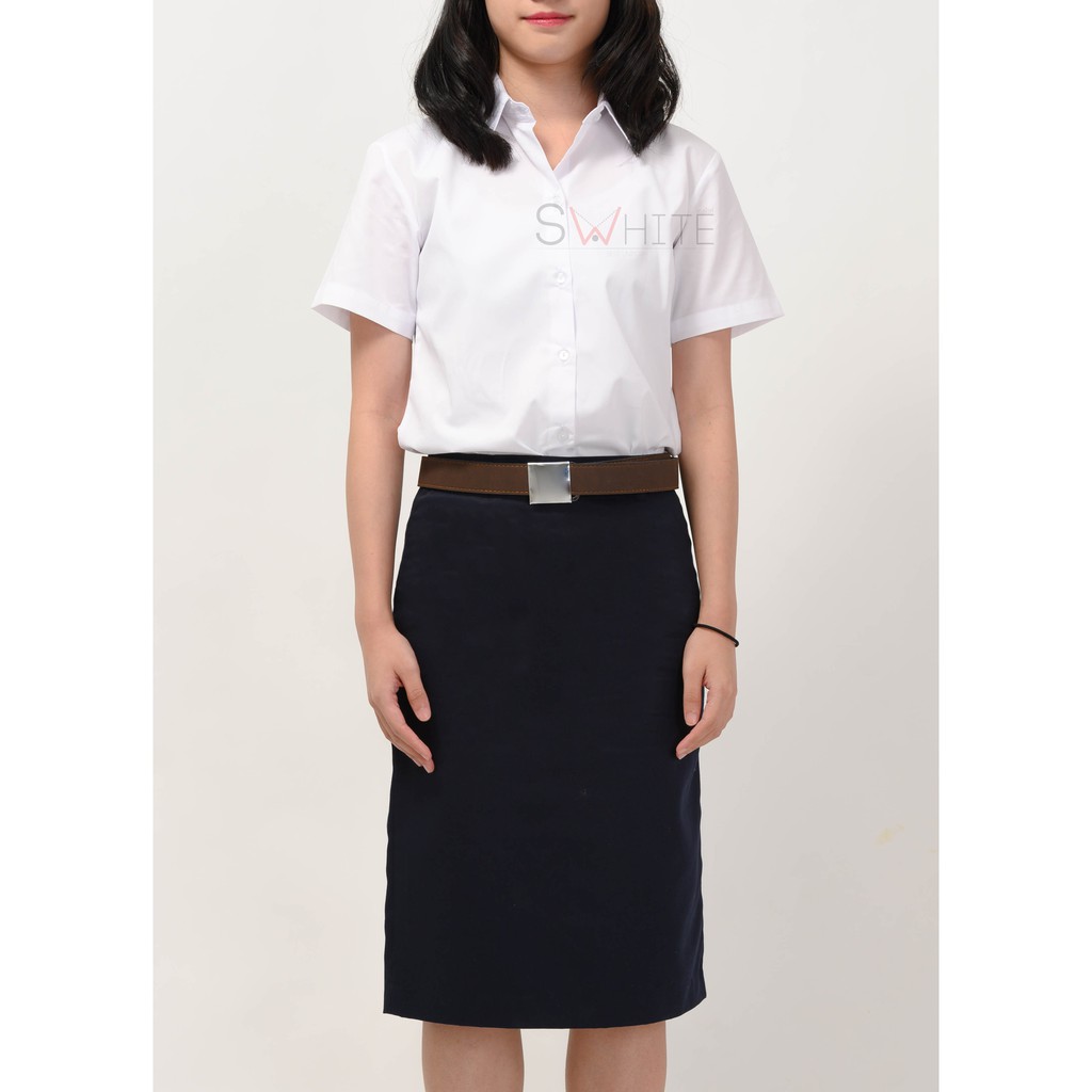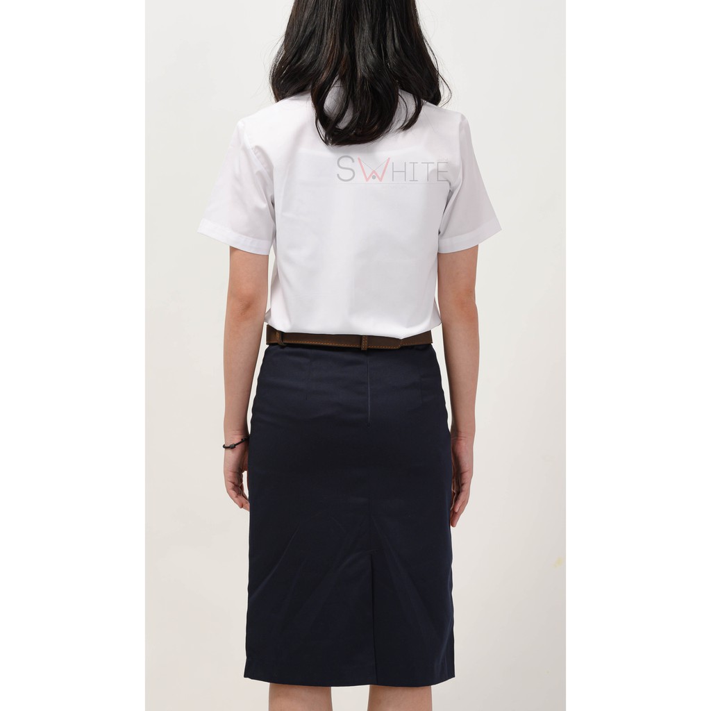 S-white [ นักศึกษา นิสิต รับปริญญา ] เสื้อพิธีการตัวตรง แขนพับหน้าว่างหลังว่าง SW-COM-13