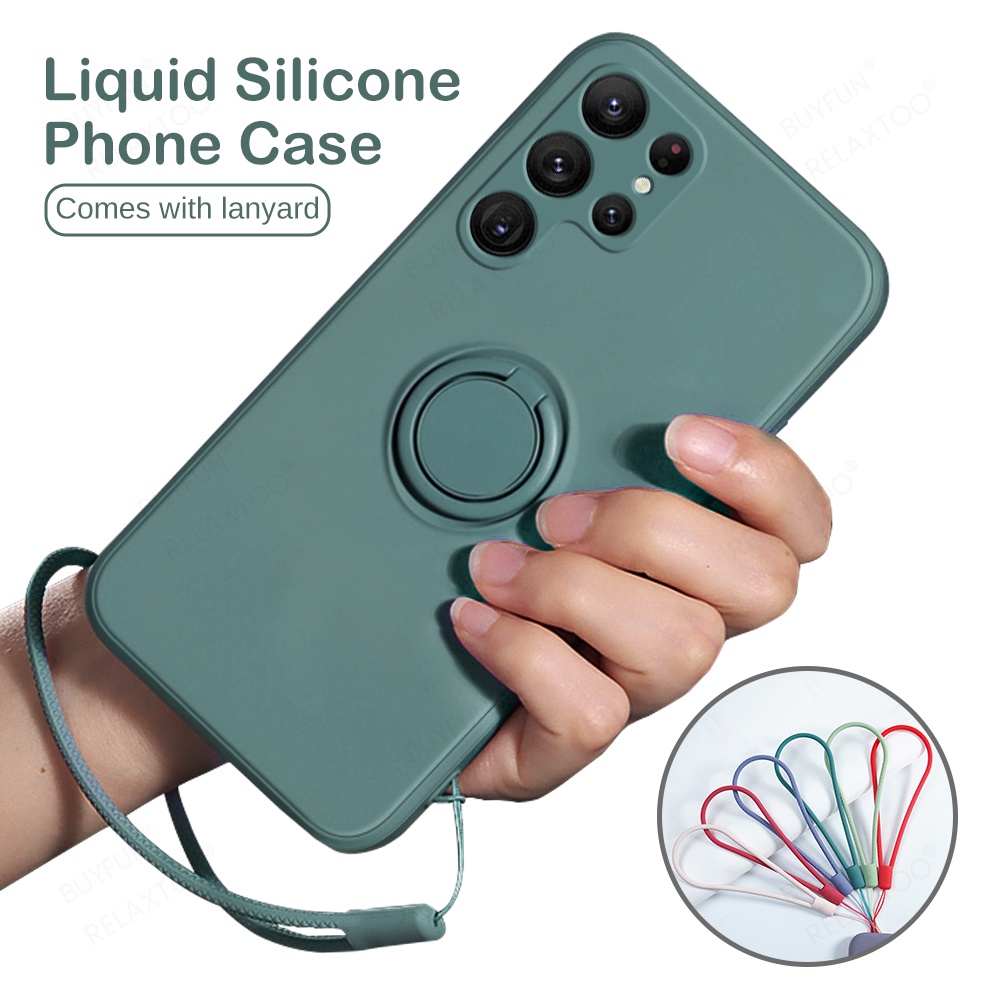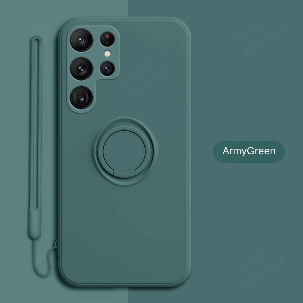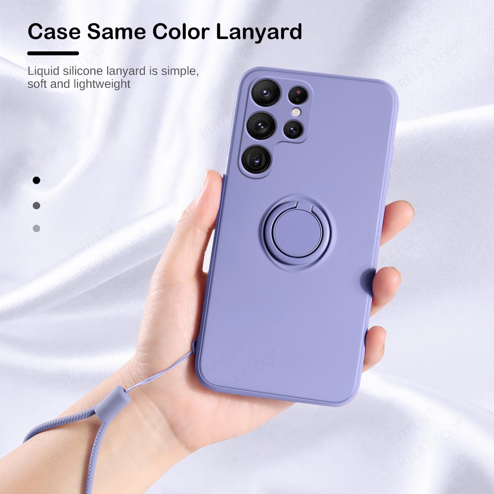 S22Ultra Case Soft Liquid Silicone Phone Cover For Samsung Galaxy S22 Ultra S 22 Plus 5G Magnet Ring Holder Strap Coque Fundas