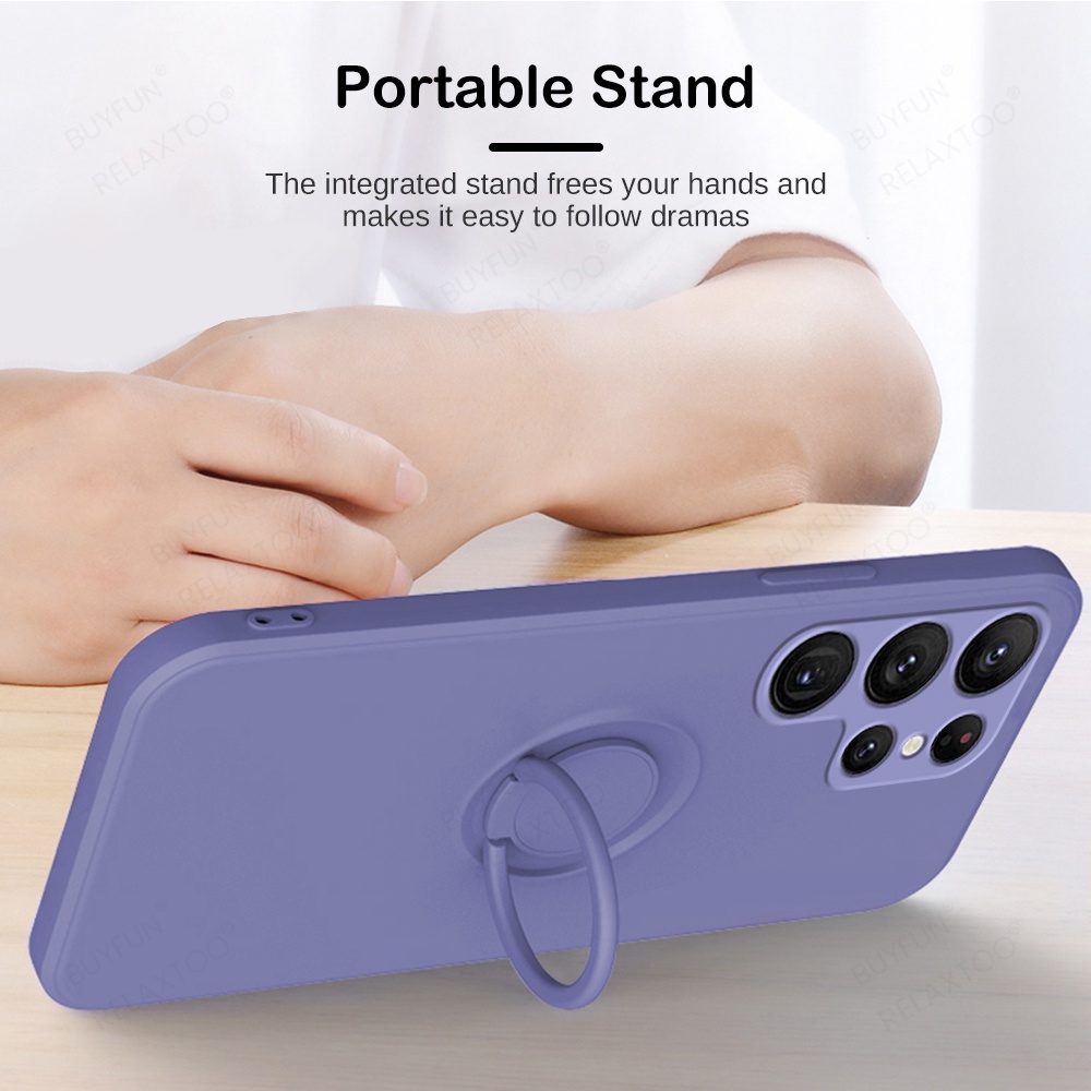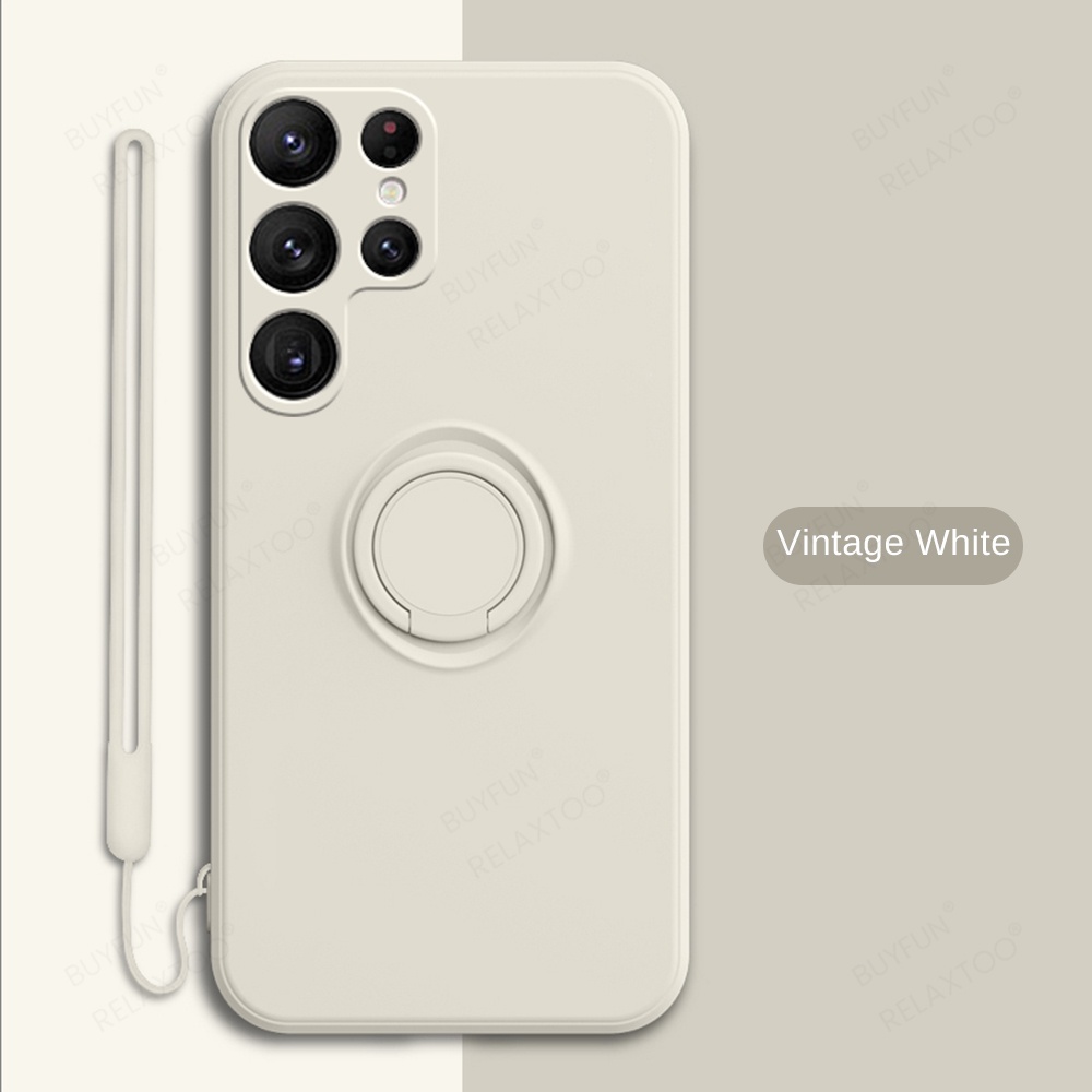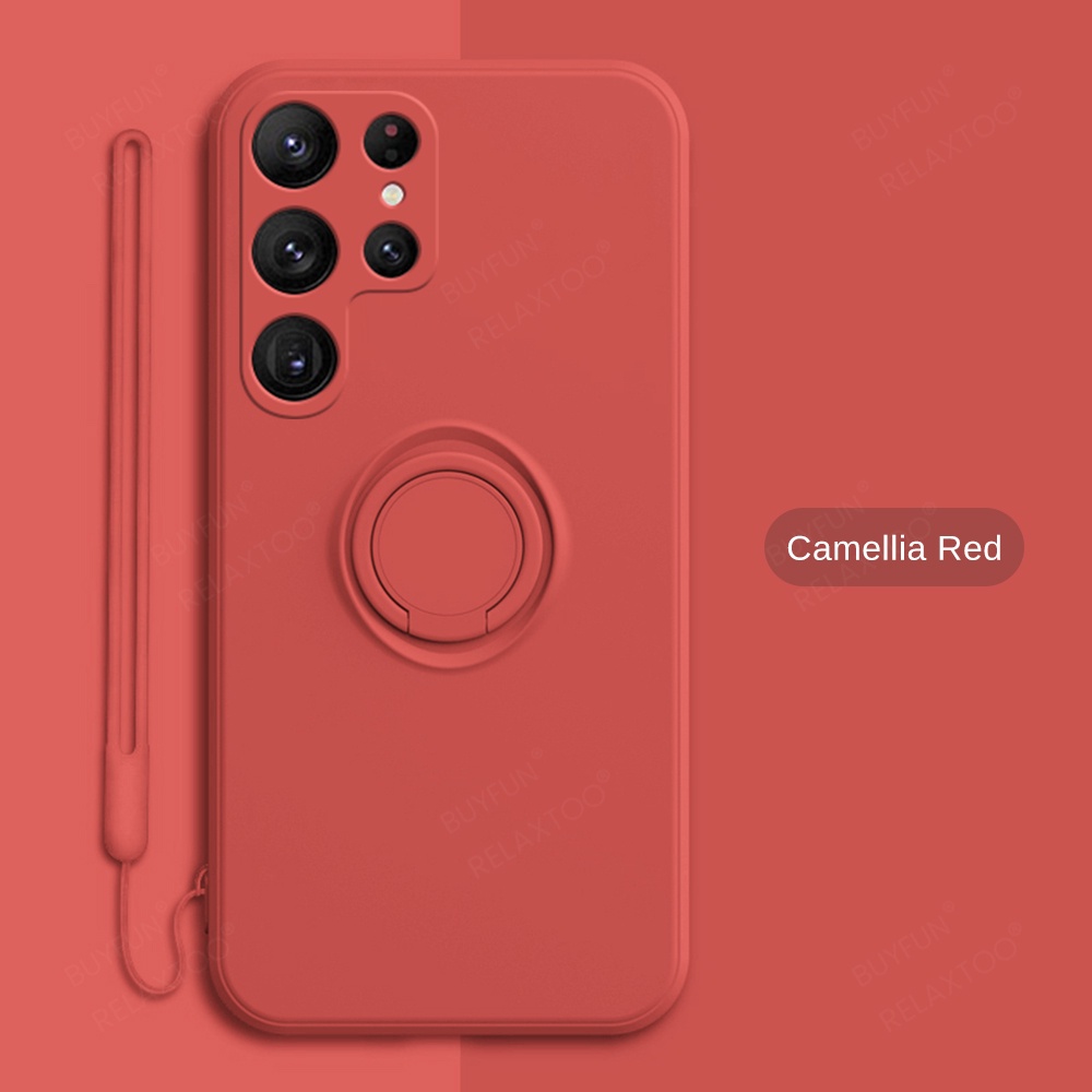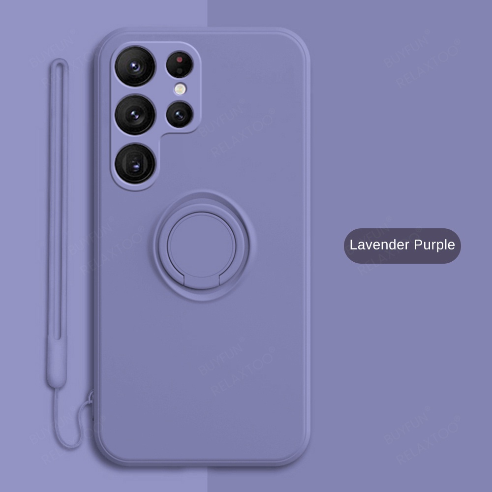 S22Ultra Case Soft Liquid Silicone Phone Cover For Samsung Galaxy S22 Ultra S 22 Plus 5G Magnet Ring Holder Strap Coque Fundas