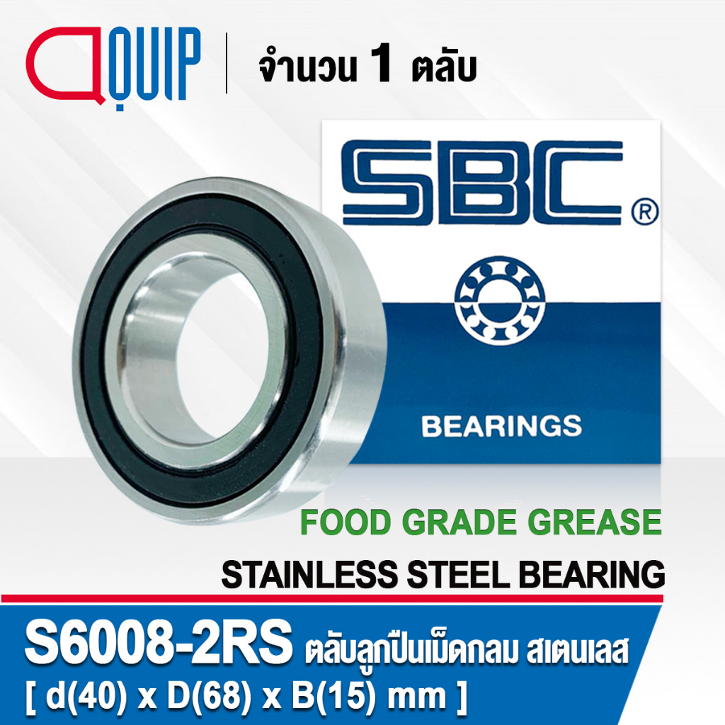 S6008-2RS SBC ตลับลูกปืนเม็ดกลม สเตนเลส SS6008-2RS จาระบี ฟู้ด เกรด STAINLESS BEARING S6008 2RS Material SUS420 S6008RS