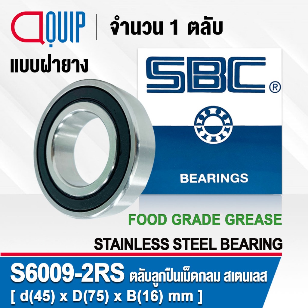 S6009-2RS SBC ตลับลูกปืนเม็ดกลม สเตนเลส SS6009-2RS จาระบี ฟู้ด เกรด S6009 2RS Material SUS420 S6009RS