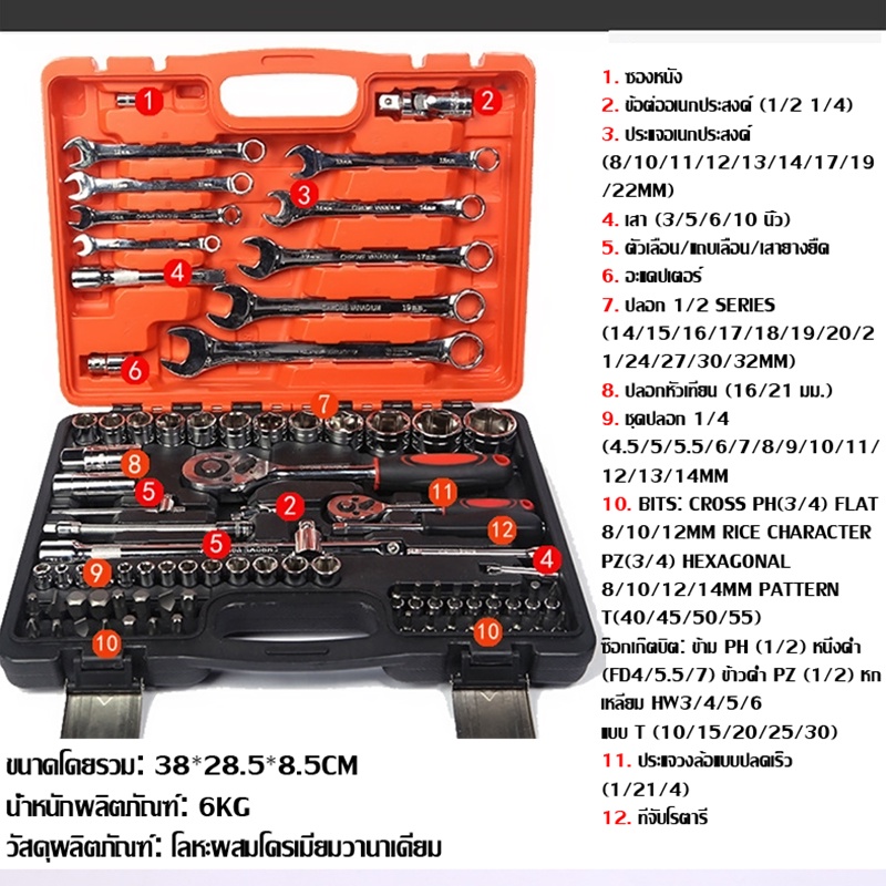 SA ชุดเครื่องมือช่างอเนกประสงค์ ชุดเครื่องมือ ชุดประแจบล็อค ประแจ ชุดประแจซ่อม 82 ชิ้น พร้อมกล่องพลาส