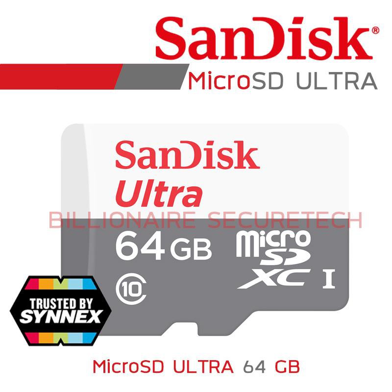 SANDISK ULTRA MicroSD Card SDSQUNS_064G_GN3MN : 64 GB (BY SYNNEX) Class 10 BY BILLIONAIRE SECURETECH