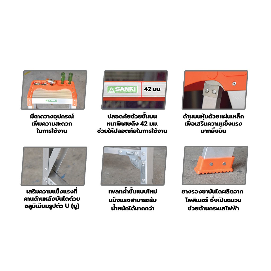 SANKI(ซันกิ) บันไดอลูมิเนียม บันไดซันกิ รุ่น 3 ขั้น แบบมีถาด LD-SKT03