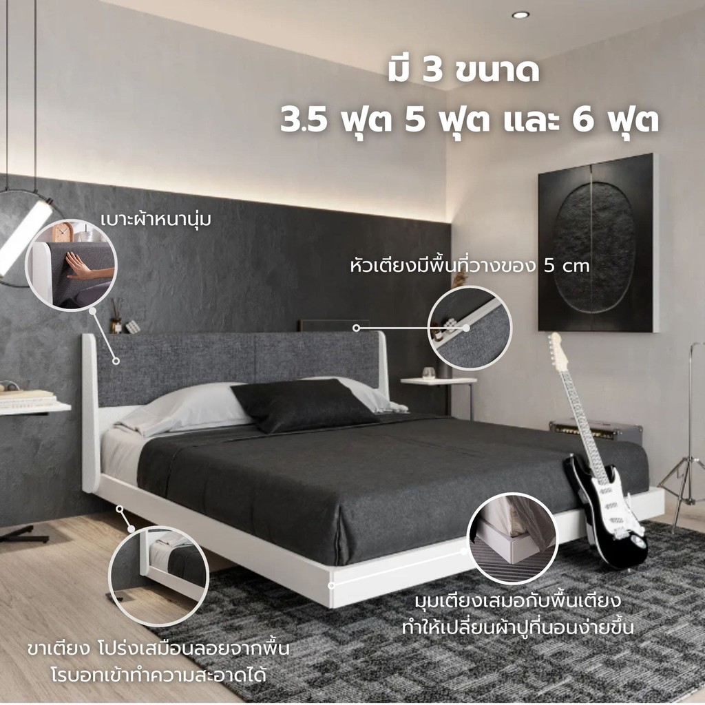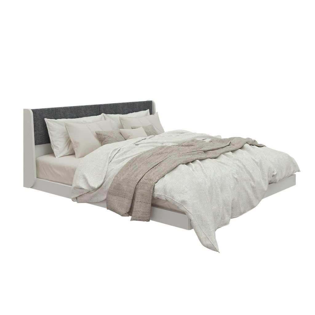 SB Design Square เตียงขนาด 6 ฟุต(เบาะหัวเตียงสีเทา) รุ่น Keith สีขาว (192x210x93 ซม.) แบรนด์ SB FURNITURE