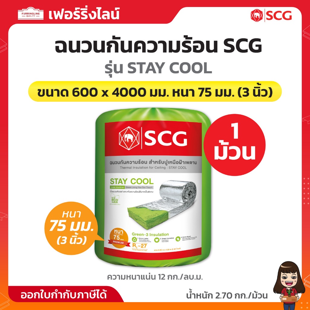 SCG ฉนวนกันความร้อน STAY COOL ขนาด 600 x 4000 มม. หนา 75 มม. (3 นิ้ว) จำนวน 1 ม้วน