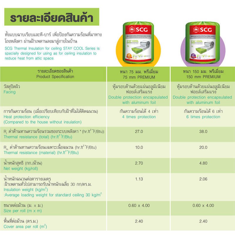 SCG ฉนวนกันความร้อน Stay Cool ความหนา 2 นิ้ว / 3 นิ้ว / 6 นิ้ว | ฉนวนใยแก้วกันความร้อน ฉนวนอาคาร ฉนวนอยู่เย็น ฉนวน