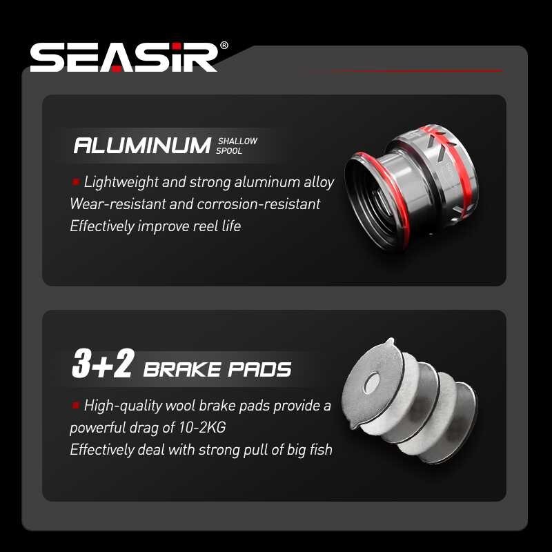 SEASIR OER Ultra Light Long Throw Aluminum Shallow Spool Spinning Reel Max Drag 12Kg 9+1Bb Freshwat