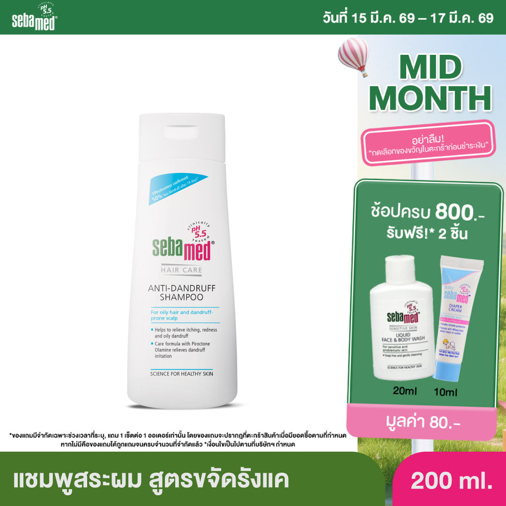 SEBAMED ANTI-DANDRUFF SHAMPOO PH 5.5 (200ML) แชมพูสระผม สูตรขจัดรังแค (200มล) ซีบาเมด แอนตี้-แดนดรัฟ แชมพู