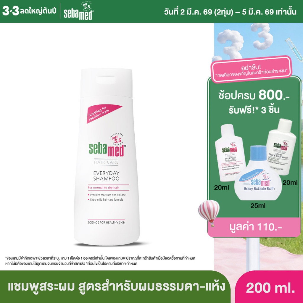 SEBAMED EVERYDAY SHAMPOO pH 5.5 (200ML) แชมพูสระผม สำหรับผมธรรมดาถึงผมแห้ง (200มล)